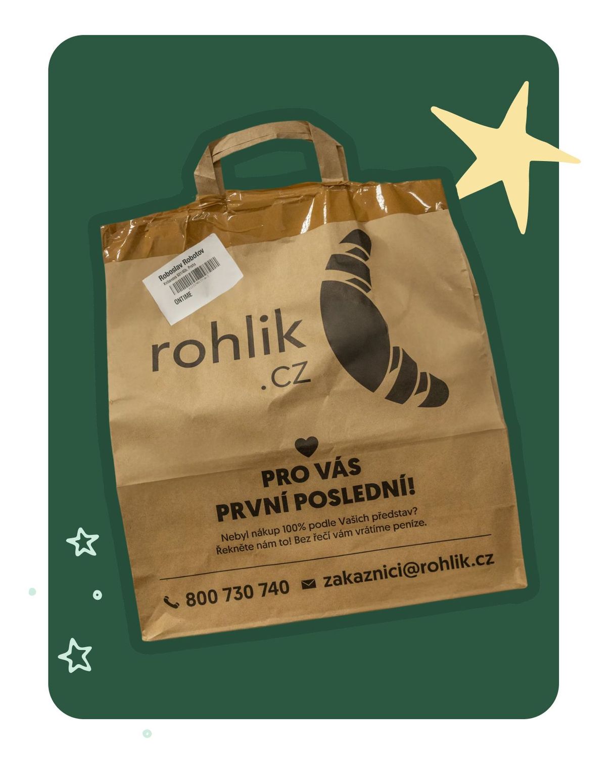 Ano, každá taška nebo balíček knih, které rohlíkovskému kurýrovi předáváš, musí být označený rohlíkovskou samolepkou s kódem, kterou dostáváš na svých nákupech. Nezoufej, pokud zrovna žádnou doma nemáš – připrav si knihy do tašek a při předání kurýr jednoduše přelepí štítky z tašek, které ti právě dovezl.