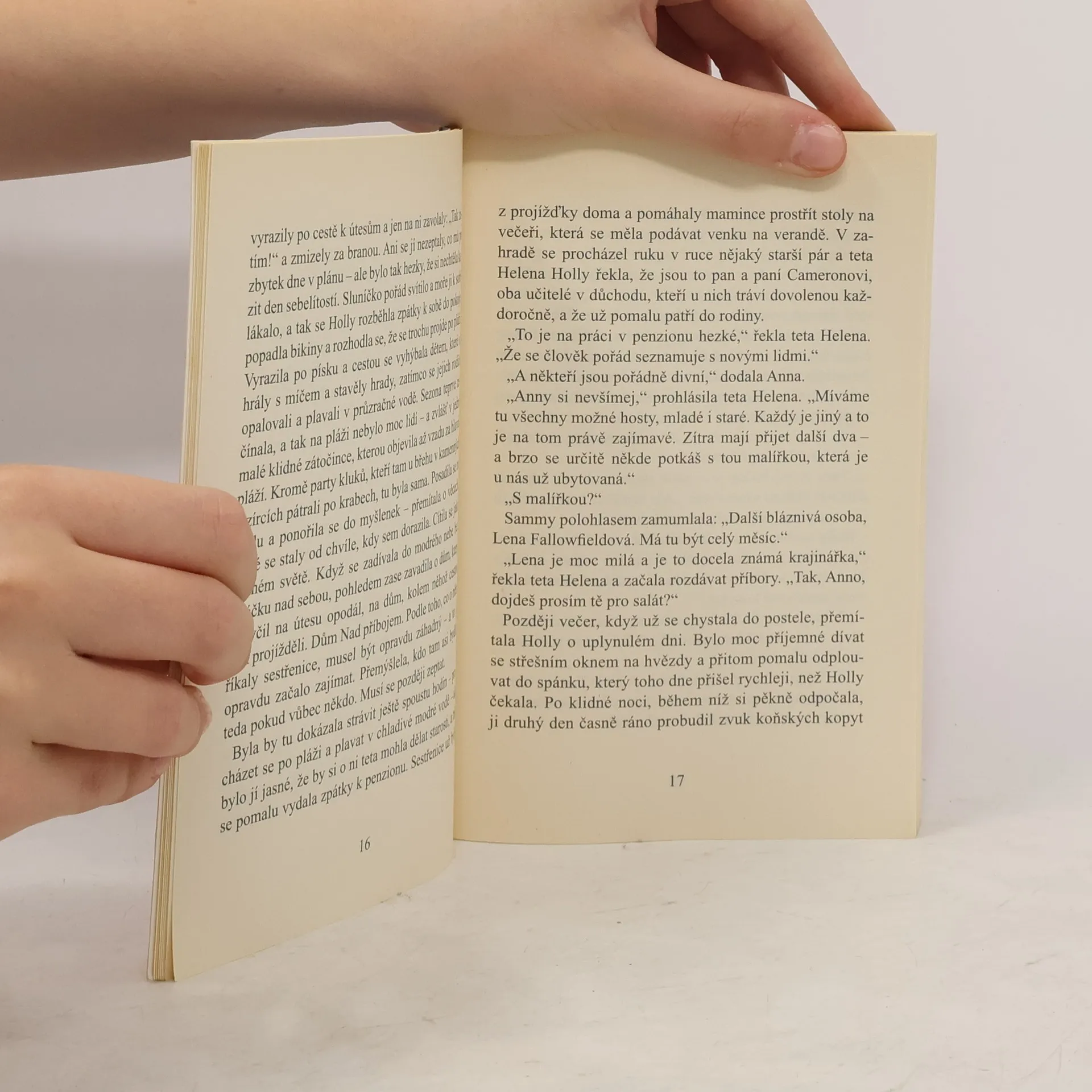 Podívala se směrem ke koni a uviděla, že bahno mu teď sahá už po krk. Vážnost situace ji přiměla k poslednímu zoufalému pokusu. Sklonila se a vší silou zabrala za tabuli – a to tak silně, že když jí povolily ruce, svalila se rovnou na záda. A rovnou do bažiny. Vyplivla hnusně chutnající bahno, které jí nateklo do pusy, a chtěla vstát - ale v tu chvíli pochopila, že v močálu uvázla stejně jako kůň. Holly hlasitě zanadávala a pokusila se potlačit paniku, která ji užuž zachvacovala. Tenhle den se teda vážně vyvedl. Teď už jí zbývalo jen jediné. „Pomoc!“ zakřičela tak hlasitě, jak jen dokázala. „Pomozte mi!“ Hollyiny prázdniny v tetině přímořském penzionu nezačnou zrovna šťastně – nějak si nepadne do oka se sestřenicemi Annou a Sammy. Na první společné projížďce se Holly bezhlavě pustí za záhadným koněm na útěku a následkem toho se ocitne v ohrožení života! Když se při té příležitosti seznámí a spřátelí s Jordanem – klukem, který bydlí ve strašidelném starém domě na útesech, přinese to další problémy, Holly je však odhodlaná se o nalezeném koni dozvědět co nejvíc – a taky chce najít jeho nezvěstnou jezdkyni dřív, než bude pozdě. Ale proč je Jordan pořád tak tajnůstkářský a proč mu Anna a Sammy tolik nedůvěřují? A jak moc je Holly ochotná riskovat pro záchranu ztraceného koně? Zdroj: www.pennygirl.cz