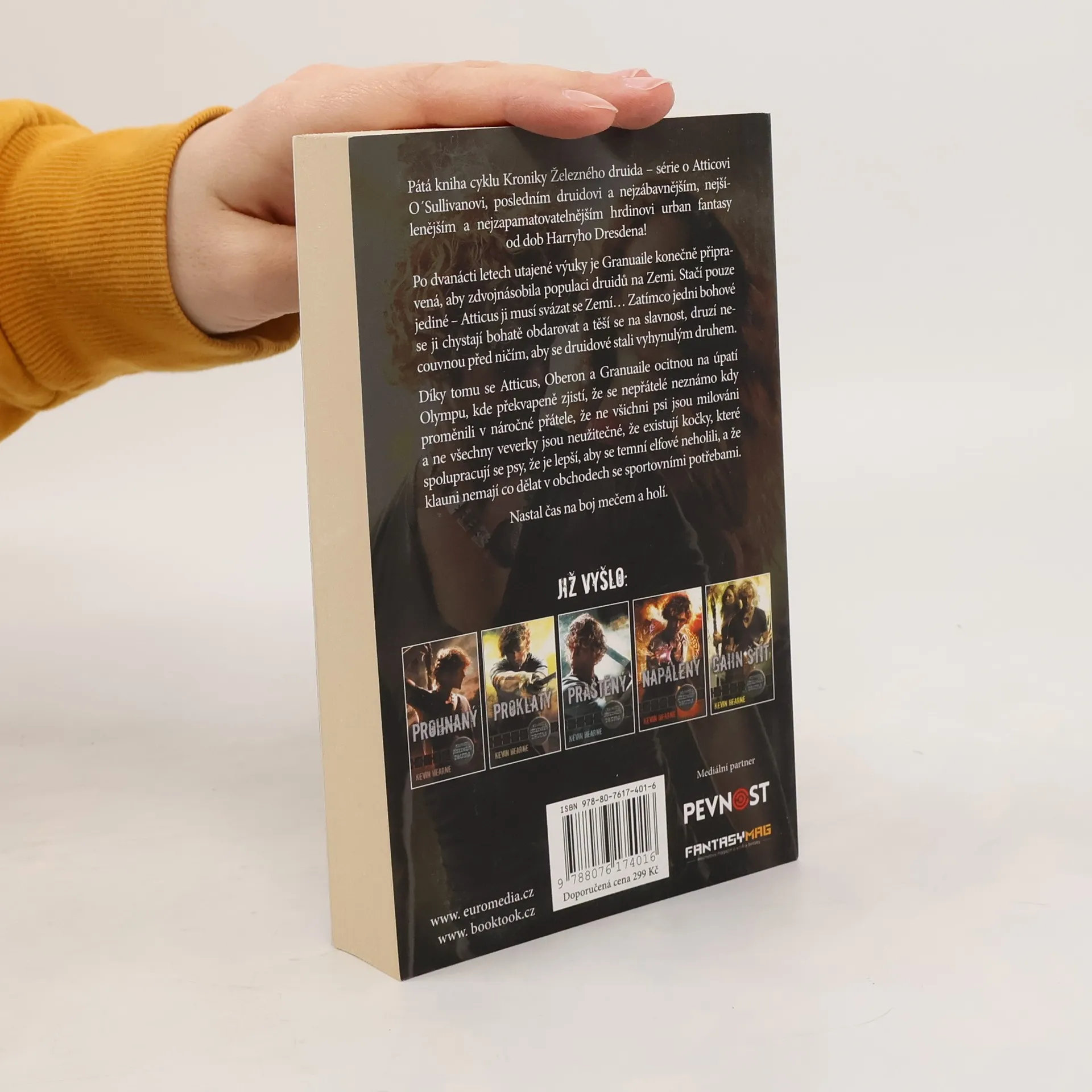 Pátá kniha cyklu Kroniky Železného druida – série o Atticovi O´Sullivanovi, posledním druidovi a nejzábavnějším, nejšílenějším a nejzapamatovatelnějším hrdinovi urban fantasy od dob Harryho Dresdena! Po dvanácti letech utajené výuky je Granuaile konečně připravená, aby zdvojnásobila populaci druidů na Zemi. Stačí pouze jediné – Atticus ji musí svázat se Zemí… Zatímco jedni bohové se ji chystají bohatě obdarovat a těší se na slavnost, druzí necouvnou před ničím, aby se druidové stali vyhynulým druhem. Díky tomu se Atticus, Oberon a Granuaile ocitnou na úpatí Olympu, kde překvapeně zjistí, že se nepřátelé neznámo kdy proměnili v náročné přátele, že ne všichni psi jsou milováni a ne všechny veverky jsou neužitečné, že existují kočky, které spolupracují se psy, že je lepší, aby se temní elfové neholili a že klauni nemají co dělat v obchodech se sportovními potřebami. Nastal čas na boj mečem a holí.