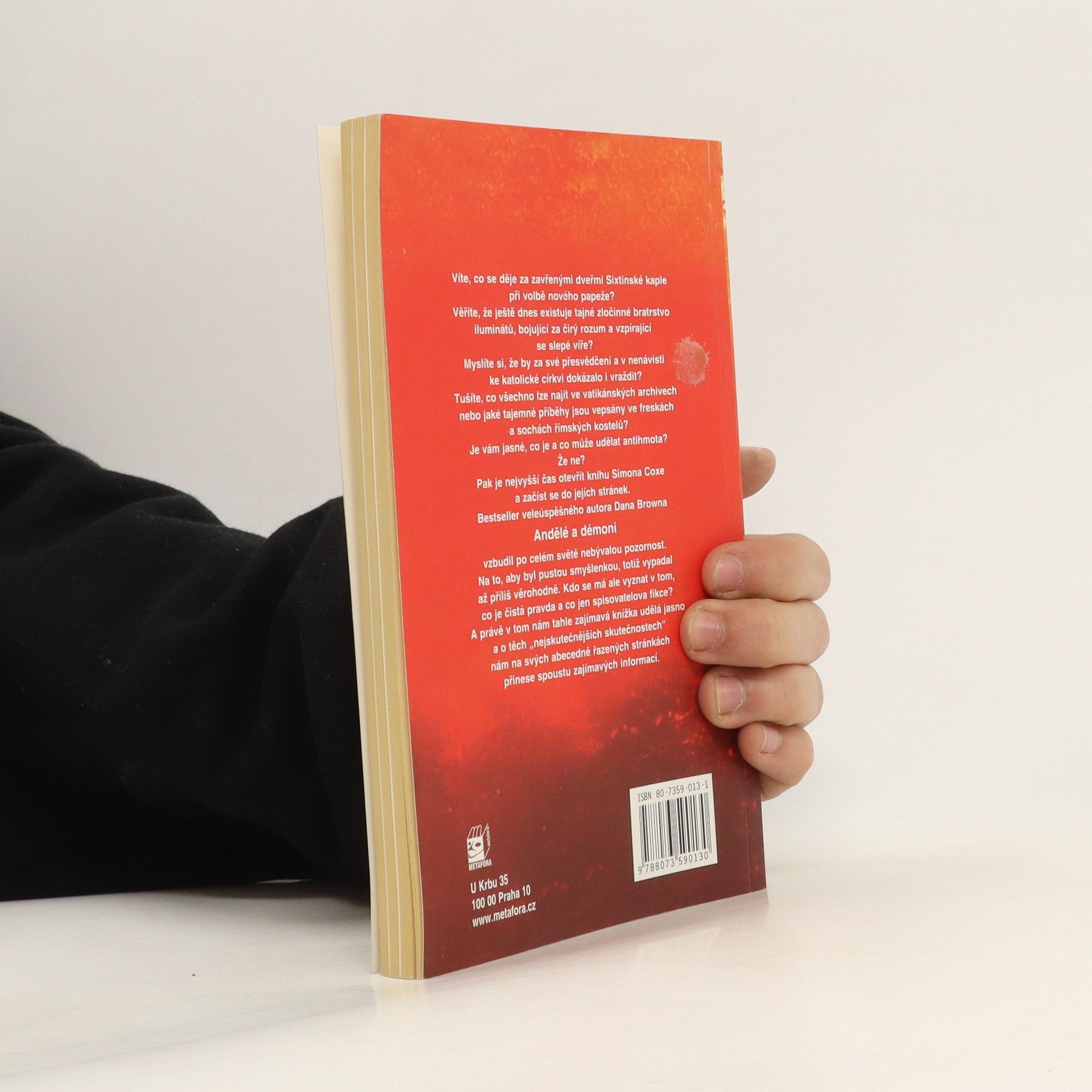 Podnětná „miniencyklopedie“ zahrnující všechny zajímavé věci, o nichž padla zmínka ve světovém bestselleru Dana Browna Andělé a démoni. Věříte, že ještě dnes existuje prastaré bratrstvo iluminátů, bojující za čirý rozum a vzpírající se slepé víře? Myslíte si, že by za své přesvědčení a v nenávisti ke katolické církvi dokázalo i vraždit? Víte, co lze najít ve vatikánských archivech, nebo jaké tajemné příběhy jsou vepsány ve freskách a sochách římských kostelů? Je vám jasné, co je a co může udělat antihmota? Že nevíte? Pak je nejvyšší čas otevřít knihu Simona Coxe a začíst se do jejích stránek. Bestseller veleúspěšného autora Dana Browna Andělé a démoni vzbudil po celém světě nebývalou pozornost. Na to, aby byl pustou smyšlenkou, totiž vypadal až příliš věrohodně. Kdo se má ale vyznat v tom, co je čistá pravda a co jen spisovatelova fikce? A právě v tom nám tahle zajímavá knížka udělá jasno a o těch „nejskutečnějších skutečnostech“ nám na svých abecedně řazených stránkách přinese spoustu zajímavých informací.... celý text