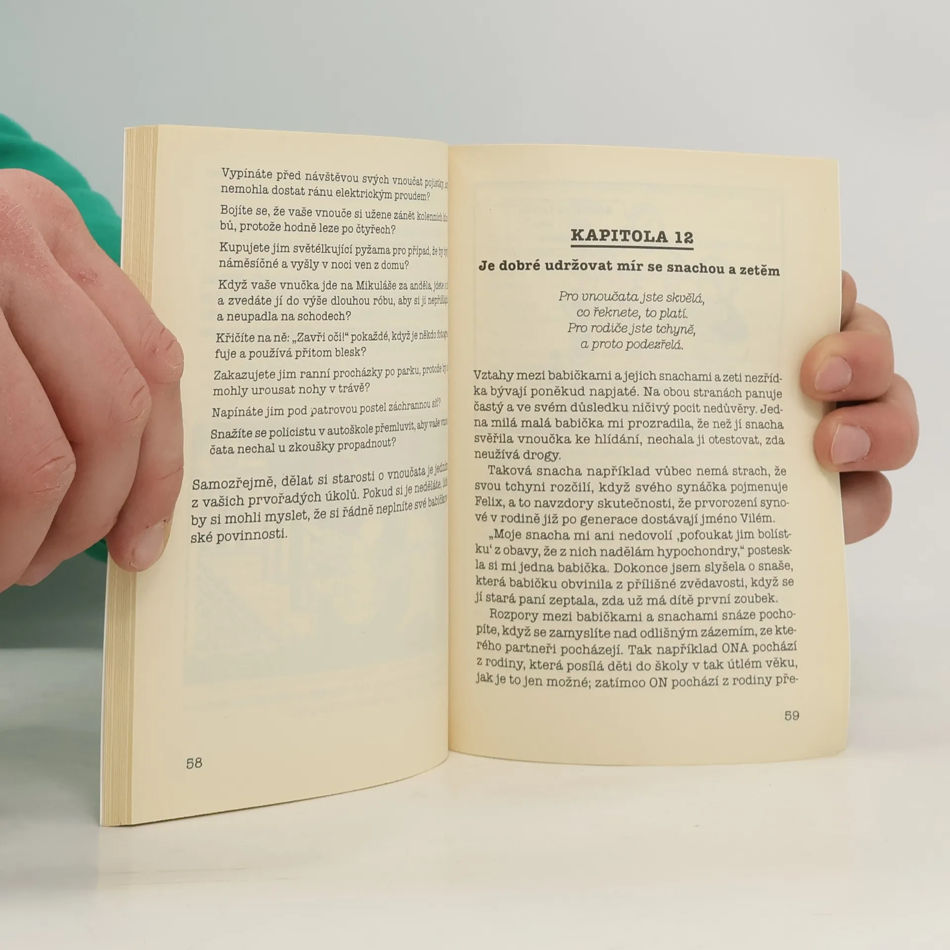 Od té doby, kam až lidská paměť sahá, bývají babičky pověřovány hlídáním dětí, zatímco rodiče si užívají večer ve městě... nebo na Kanárských ostrovech. Nyní však babičkám v úzkých přichází na pomoc kniha Mary McBrideové, která jim vysvětluje, jak zůstat "sladkou, laskavou, nejdražší, no zkrátka milovanou babičkou".