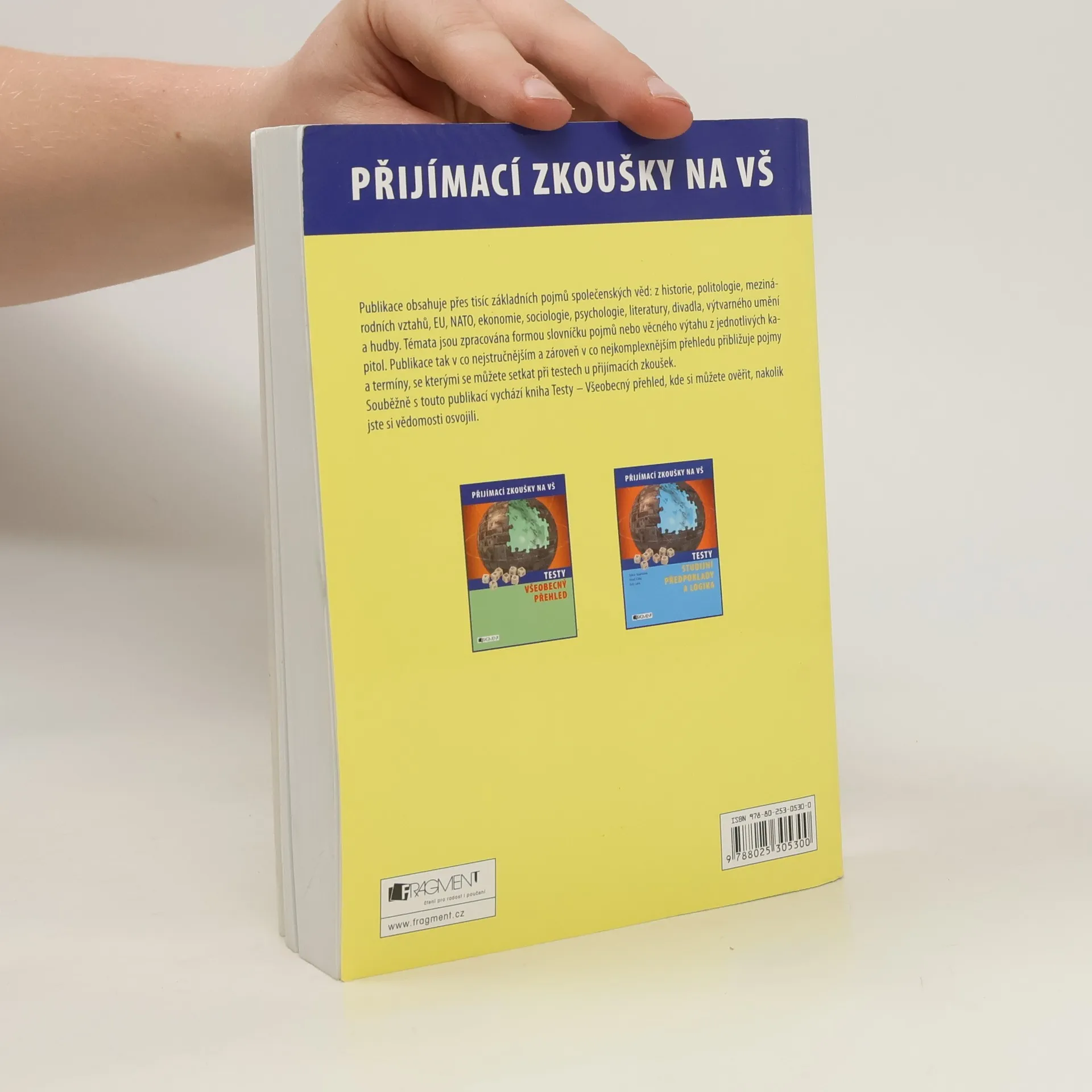 Publikace obsahuje přes tisíc základních pojmů společenských věd: z historie, politologie, mezinárodních vztahů, EU, NATO, ekonomie, sociologie, psychologie, literatury, divadla, výtvarného umění a hudby. Témata jsou zpracována formou slovníčku pojmů nebo věcného výtahu z jednotlivých kapitol. Publikace tak v co nejstručnějším a zároveň v co nejkomplexnějším přehledu přibližuje pojmy a termíny, se kterými se můžete setkat při testech u přijímacích zkoušek. Souběžně s touto publikací vychází knížka Testy všeobecného přehledu, kde si můžete ověřit, nakolik jste si vědomosti osvojili.