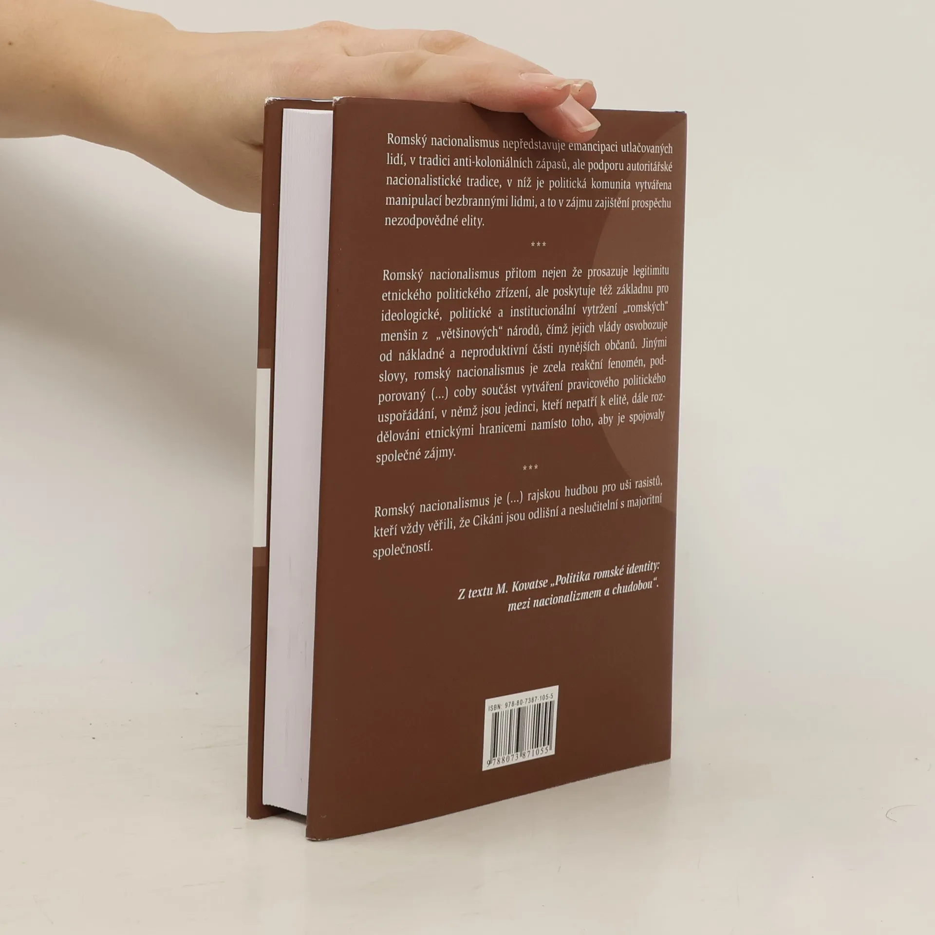 Publikace zahrnuje 11 statí (z toho 10 překladů) věnovaných problematice etnicity, resp. nacionalizmu ve vztahu k Cikánům/Romům. Výbor je uspořádán jako určité the best of z toho, co na dané téma napsali přední společenskovědní badatelé ve světě za posledních 25 let. Vzhledem k diskuzi o „romské problematice“ v ČR a SR představuje výbor zajímavou a výrazně kritickou alternativu.