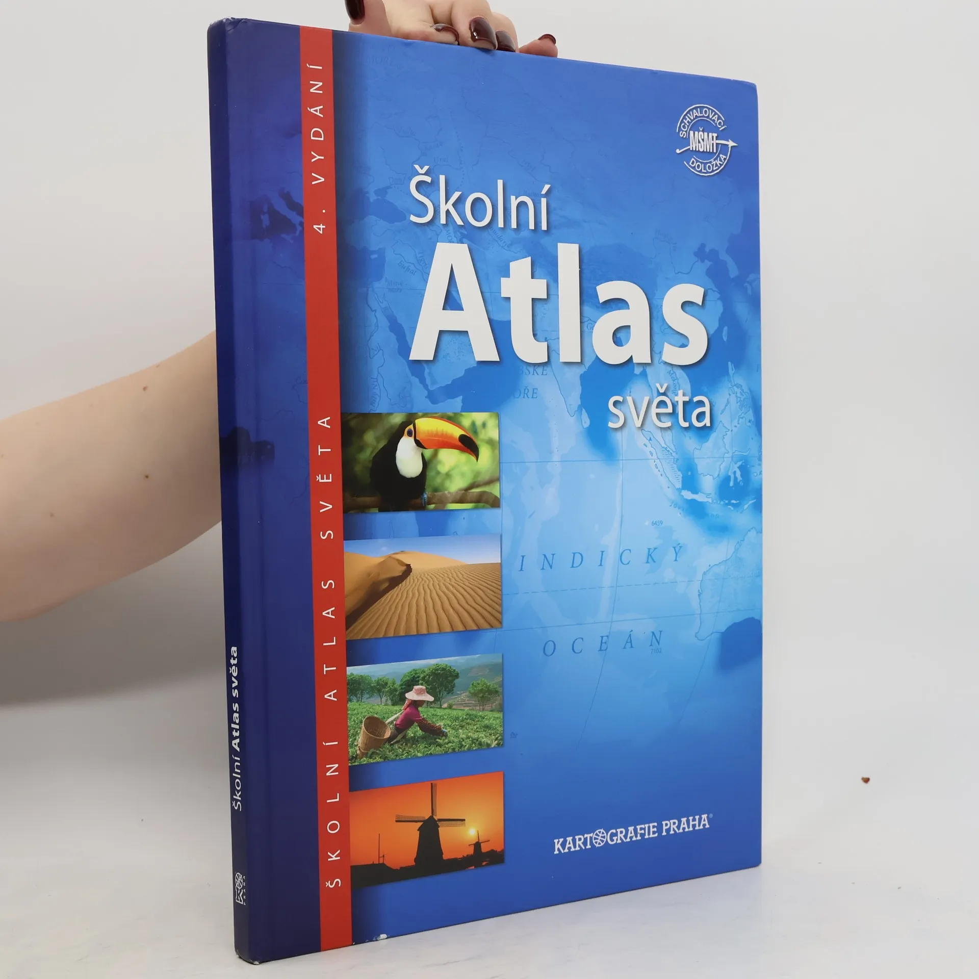 Nejprodávanější český školní atlas je univerzální pomůckou pro výuku zeměpisu na všech stupních škol. Atlas je rozdělen do tematických kapitol s barevným odlišením, což usnadňuje orientaci v mapách. Úvodní část obsahuje nejnovější astronomické poznatky o vesmíru a Sluneční soustavě. Následuje kapitola Svět s tematickými mapami zaměřenými na přírodu, obyvatelstvo, hospodářství a prostředí, v němž lidé žijí. Části věnované jednotlivým světadílům zahrnují podrobné obecně zeměpisné mapy s doplňujícími tematickými mapami a historickými mapami klíčových etap vývoje kontinentů, což umožňuje mezipředmětovou výuku. Mapovou část každého světadílu uvádějí fotografické stránky s charakterizujícím textem a tabulkou geografických údajů. Atlas obsahuje přehlednou tabulku všech států a závislých území světa, tabulky zeměpisných rekordů a rejstřík s více než 15 000 názvy. Čtvrté vydání navazuje na úspěšná vydání z let 2004, 2007 a 2011. Mezi novinky patří témata jako zaměstnanost žen, vzdělání, zdravotnictví a kvalita života, nové téma Ohniska napětí ve světě, fyzická a administrativní mapa Česka, podrobná mapa severní Asie a vylepšený znakový klíč obecně zeměpisných map pro lepší čitelnost.