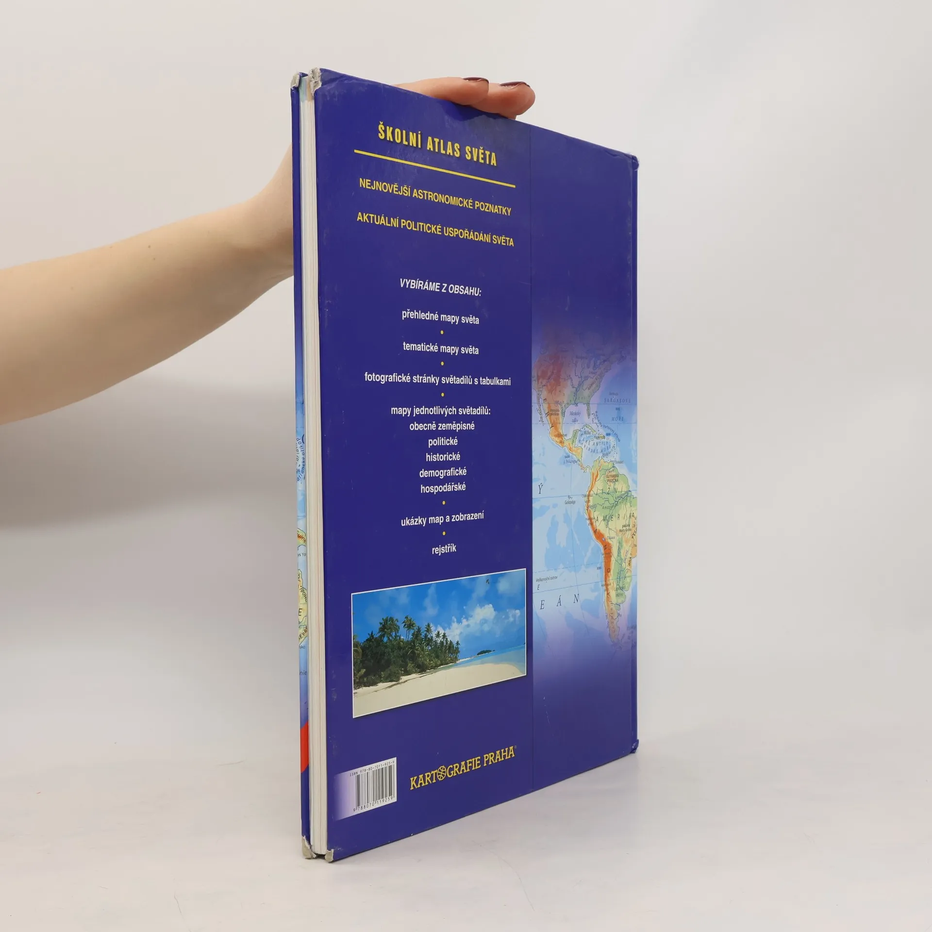 Nejnovější astronomické poznatky, aktuální politické uspořádání světa. Vybíráme z obsahu: přehledné mapy světa, tematické mapy světa, fotografické stránky světadílů s tabulkami, mapy jednotlivých světadílů: obecně zeměpisné, politické, historické, demografické, hospodářské; ukázky map a zobrazení, rejstřík. Druhé vydání.
