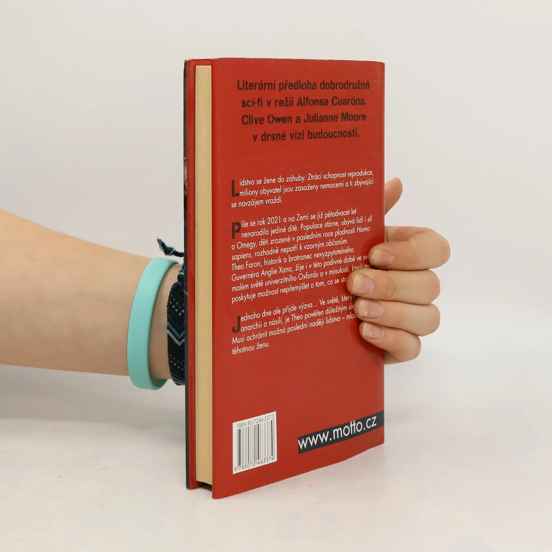 Lidstvo se žene do záhuby. Ztrácí schopnost reprodukce, miliony obyvatel jsou zasaženy nemocemi a ti zbývající se navzájem vraždí Píše se rok 2021 a na Zemi se již pětadvacet let nenarodilo jediné dítě. Populace stárne, ubývá lidí i sil a Omegy, děti zrozené v posledním roce plodnosti Homo sapiens, rozhodně nepatří k vzorným občanům. Po celém světě se snaží vlády udržet pořádek a relativně klidný průběh zániku lidstva. O to má největší zájem Rada Anglie v čele s nevyzpytatelným Guvernérem Xanem. Však co se skrývá pod touto optimistickou maskou? Vypravěčem celého příběhu a hlavním protagonistou je Xanemův bratranec Theo Faron, historik žijící i v této podivné době ve svém malém světě univerzitního Oxfordu a v minulosti, která mu poskytuje možnost nepřemýšlet o tom, co se stane… Jednoho dne ale přijde výzva… Ve světě, který podlehl anarchii a násilí, je Theo pověřen důležitým úkolem. Musí ochránit možná poslední naději lidstva – mladou těhotnou ženu. Tato kniha se stala předlohou pro stejnojmenný film, jehož režisérem je Mexičan Alfonso Cuarón, autor např. Malé princezny nebo úspěšného Harryho Pottera a vězně z Azkabanu. Premiéru filmu bude moci shlédnout v našich kinech již na počátku listopadu.