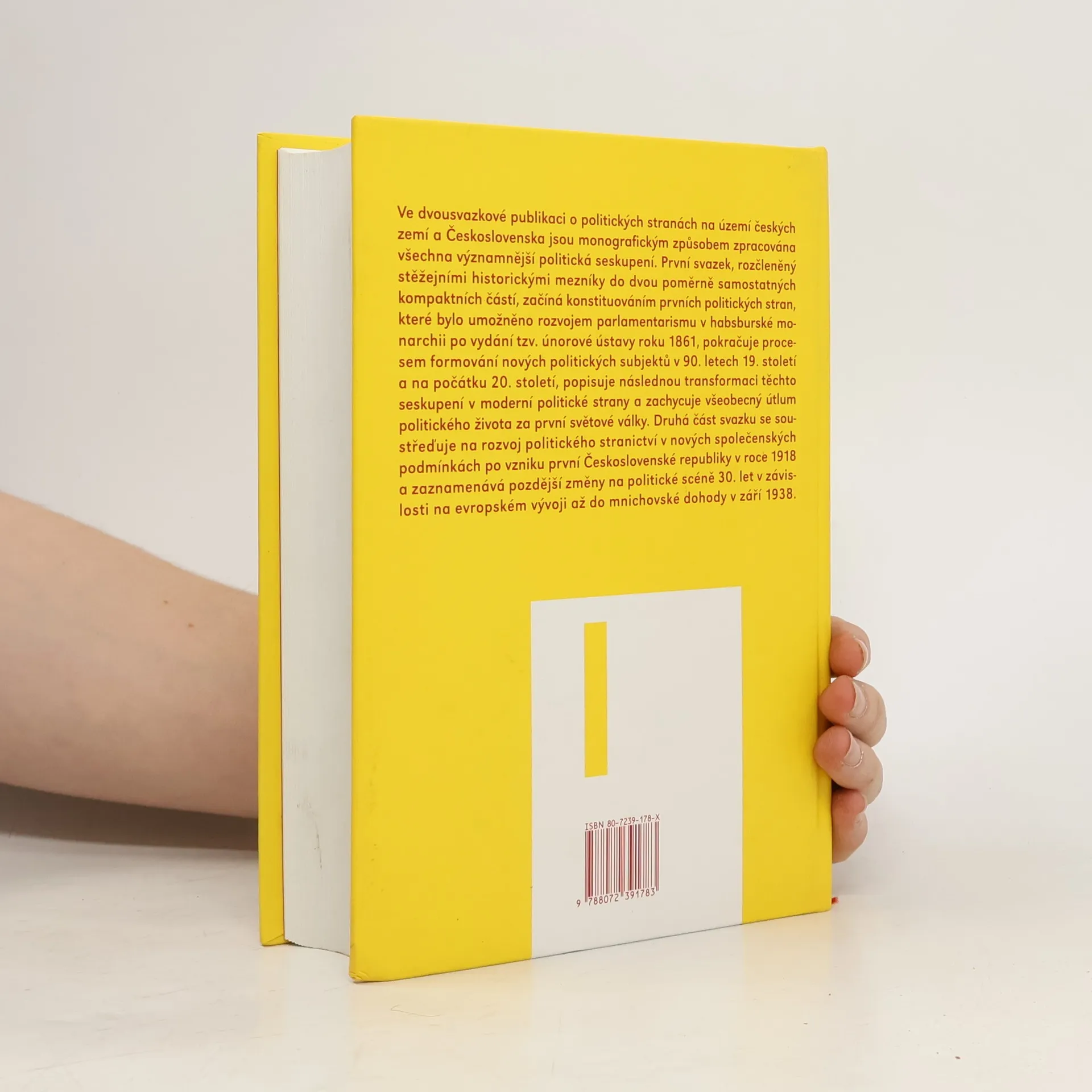 Dvoudílná publikace je výsledkem několikaleté práce početného vědeckého autorského kolektivu. Monografickým způsobem zachycuje dějiny všech významnějších politických stran a seskupení na našem území od vzniku a konstituování prvních politických subjektů počátkem šedesátých let 19. století až po nejbližší současnost a spojuje hlediska historická, politická i sociologická. Zaplňuje tak dlouholetou, negativně vnímanou mezeru v naší historiografii a svým rozsahem, kvalitou i způsobem zpracování poslouží jak odborníkům a studentům, tak laické veřejnosti. Kromě toho, že přináší řadu zcela nových poznatků, uvádí též na pravou míru mnohá fakta, jež byla v minulosti dezinterpretována či zamlčována. Publikace je doplněna rejstříky a obrazovou přílohou v každém z obou dílů a rozsáhlou výběrovou bibliografií.