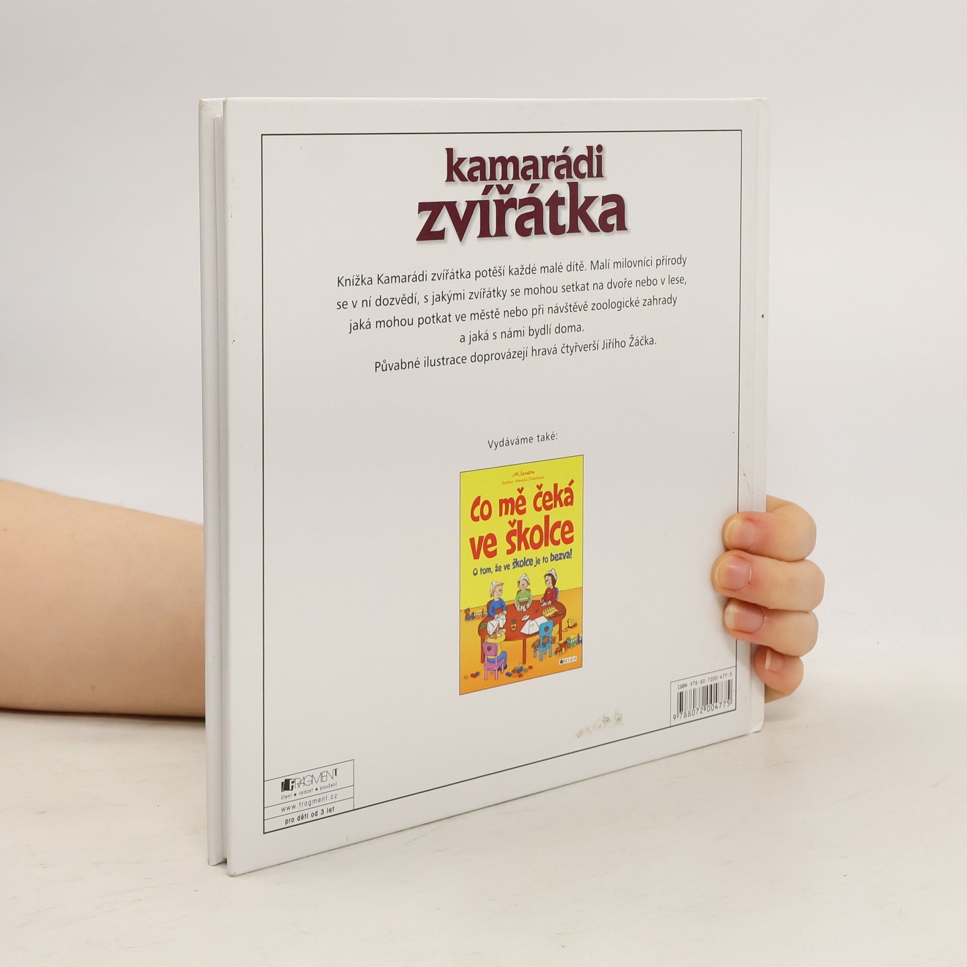 Knížka Kamarádi zvířátka potěší každé malé dítě. Malí milovníci přírody se v ní dozvědí, s jakými zvířátky se mohou setkat na dvoře nebo v lese, jaká mohou potkat ve městě nebo při návštěvě zoologické zahrady a jaká s námi bydlí doma. Půvabné ilustrace doprovázející hravá čtyřverší Jiřího Žáčka.