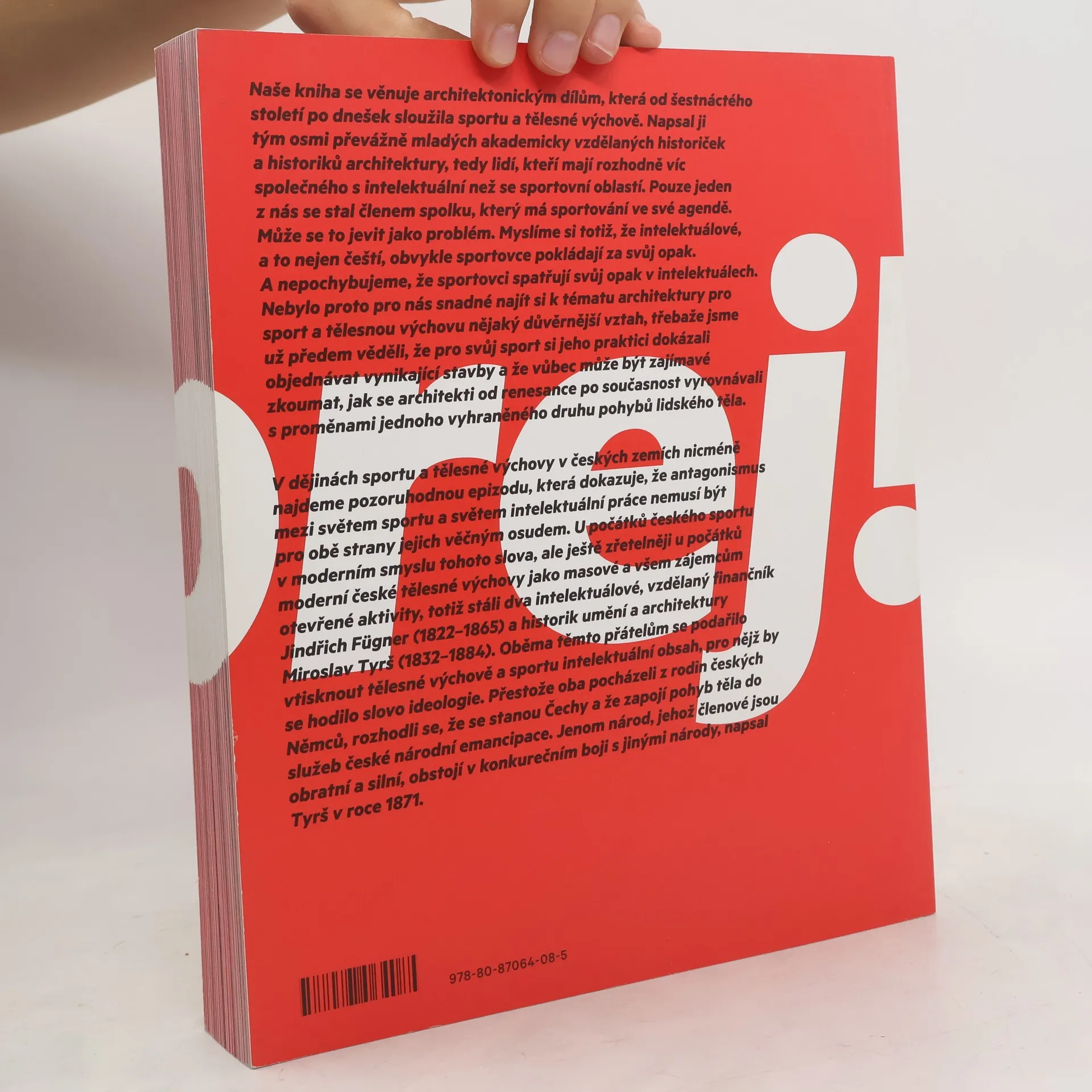 Kniha se zabývá architekturou, která od 16. do 21. století sloužila a slouží sportovním a tělovýchovným aktivitám v českých zemích. Představuje první dílo tohoto druhu z rukou českých historiků architektury. Dívá se na sport jako na důležitou lidskou aktivitu, jejíž obsah se v průběhu dějin měnil. Z výcviku a zábavy aristokracie se v moderní době sport vyvinul ve formu boje za národní emancipaci a za občanské svobody, v masovou podívanou, v nástroj státní reprezentace, v prostředek kontroly nad volným časem obyvatel i ve formu jejich nejprivátnější relaxace. Všem těmto funkcím sportu dovedla dobře posloužit i architektura. Měnila se s vývojem sportu a dávala jeho aktivitám tvář podle svých vlastních technických a stylových proměn. Mezi 60 vynikajícími stavbami pro sport a tělovýchovu nalezne čtenář míčovny, jízdárny, plovárny, střelnice a loděnice, tělocvičny Sokolů a turnerů, rozhledny a turistické chaty, stadiony, golfová hřiště, cyklostezky i fitcentra.