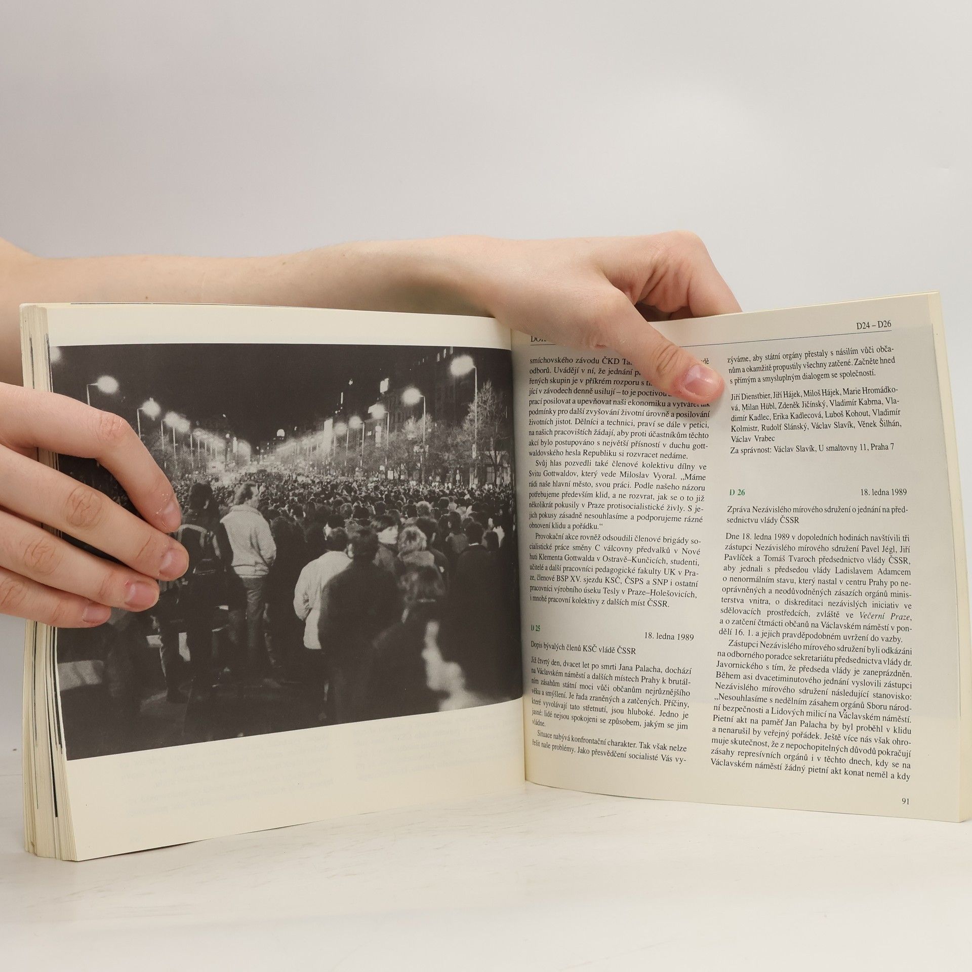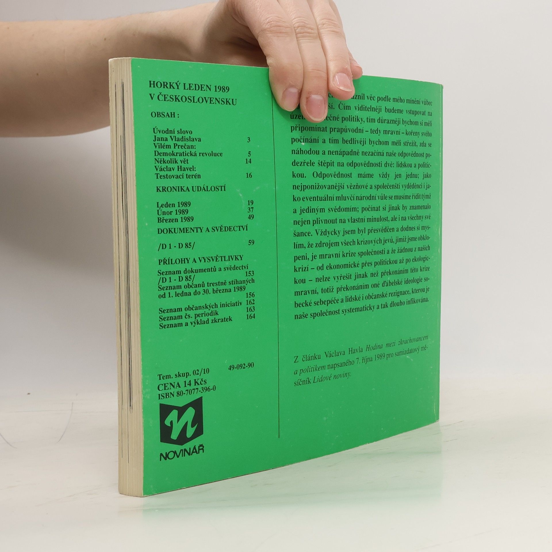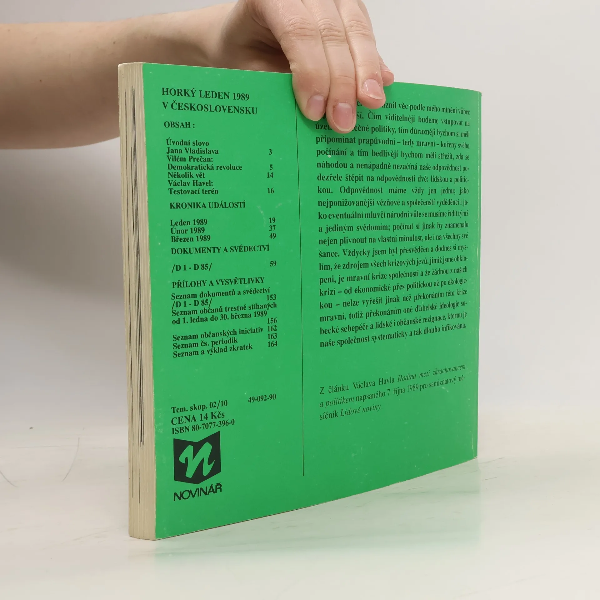 Publikace slovem i obrazem zevrubně dokumentuje pražské události spojené s 20. výročím smrti Jana Palacha. Publikace vychází jako zvláštní číslo obnoveného časopisu Reportér nakladatelství Novinář. Obsahuje dokumenty k událostem, k nimž u nás došlo v lednu roku 1989 v souvislosti s 20. výročím smrti Jana Palacha. Jde především o chronologický přehled událostí v jednotlivých dnech. Dále jsou zahrnuty svědectví očitých svědků, články v tisku, různá provolání, projevy, prohlášení, otevřené dopisy a jiné akce nezávislých občanských iniciativ.