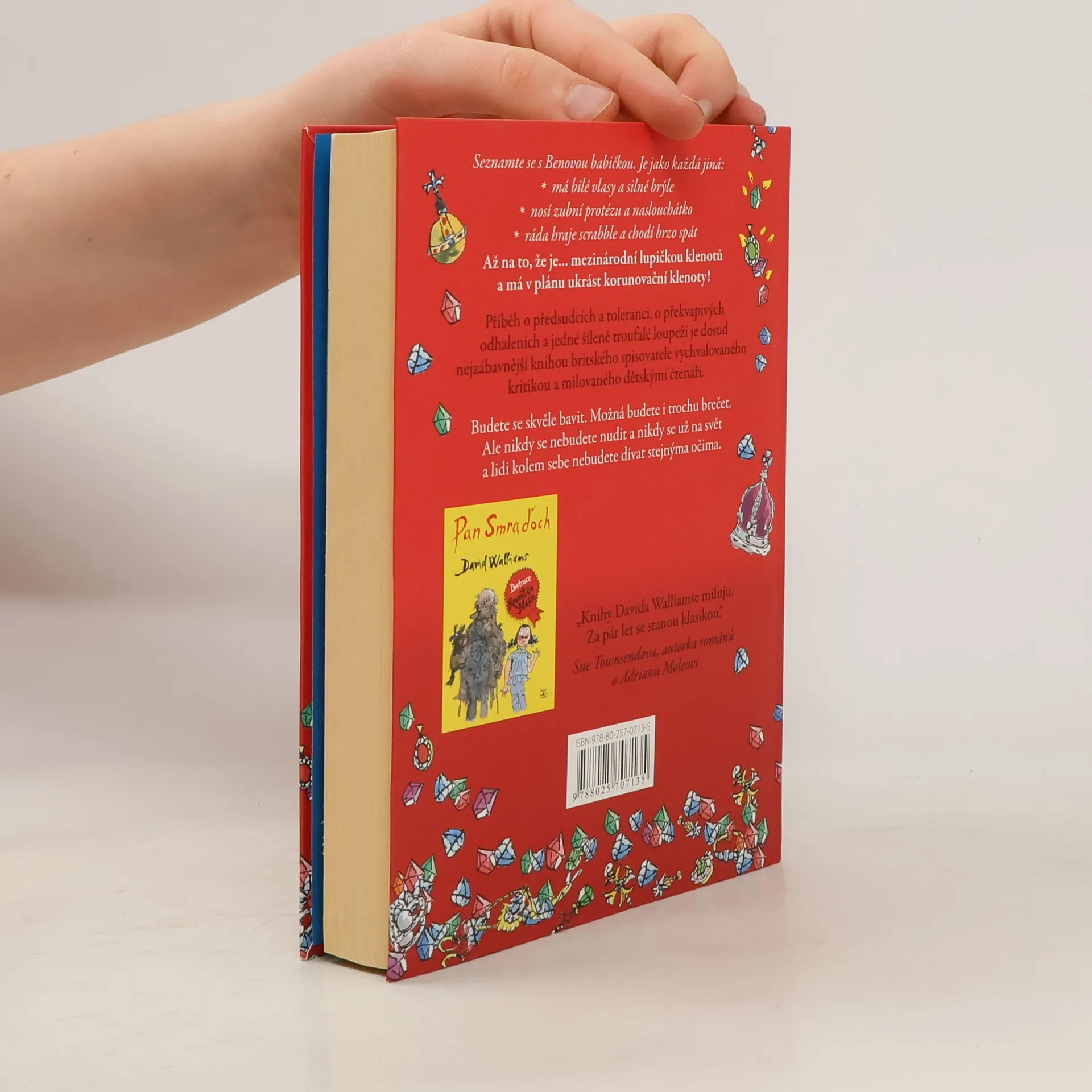Britského autora dětských knih Davida Walliamse označují kritici za nového Roalda Dahla. Jeho vypravěčsky brilantní příběhy s překvapivou pointou a černým humorem dávají tomuto označení za pravdu. Jako první se k českému čtenáři dostává Babička drsňačka. Vypráví se v ní příběh o předsudcích a toleranci, o překvapivých odhaleních a jedné šíleně troufalé loupeži. Ben je k smrti otrávený, zase má strávit víkend u babičky: "Vždyť je s ní děsná nuda! Se všema starýma je nuda. Telka jí nefunguje, pořád chce jenom hrát scrabble a smrdí kapustou!" Pěkně tvrdý odsudek z úst nezletilce, jenže to ještě Ben netuší dvě věci: 1) Jeho babička kdysi byla proslulou lupičkou šperků. 2) Celý život kula plán, jak ukradnout korunovační klenoty, a teď potřebuje Benovu pomoc!