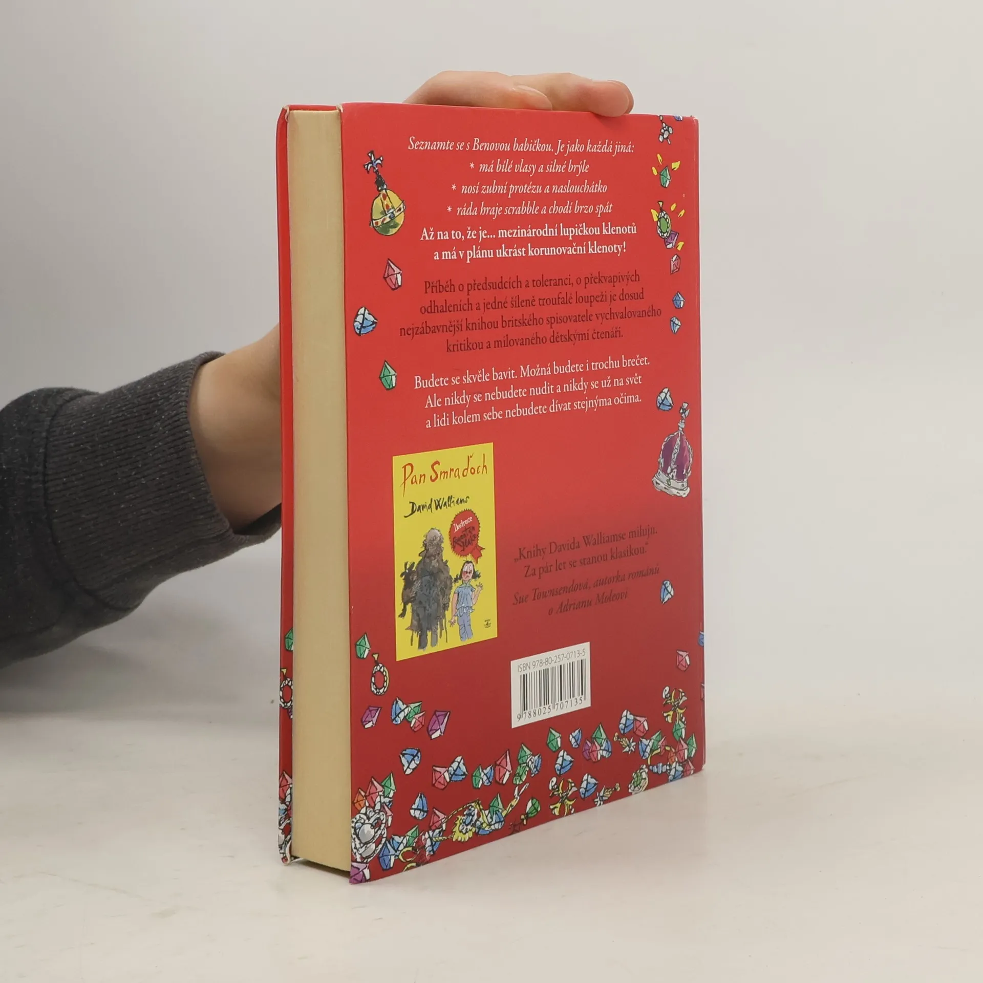 Britského autora dětských knih Davida Walliamse označují kritici za nového Roalda Dahla. Jeho vypravěčsky brilantní příběhy s překvapivou pointou a černým humorem dávají tomuto označení za pravdu. Jako první se k českému čtenáři dostává Babička drsňačka. Vypráví se v ní příběh o předsudcích a toleranci, o překvapivých odhaleních a jedné šíleně troufalé loupeži. Ben je k smrti otrávený, zase má strávit víkend u babičky: "Vždyť je s ní děsná nuda! Se všema starýma je nuda. Telka jí nefunguje, pořád chce jenom hrát scrabble a smrdí kapustou!" Pěkně tvrdý odsudek z úst nezletilce, jenže to ještě Ben netuší dvě věci: 1) Jeho babička kdysi byla proslulou lupičkou šperků. 2) Celý život kula plán, jak ukradnout korunovační klenoty, a teď potřebuje Benovu pomoc!