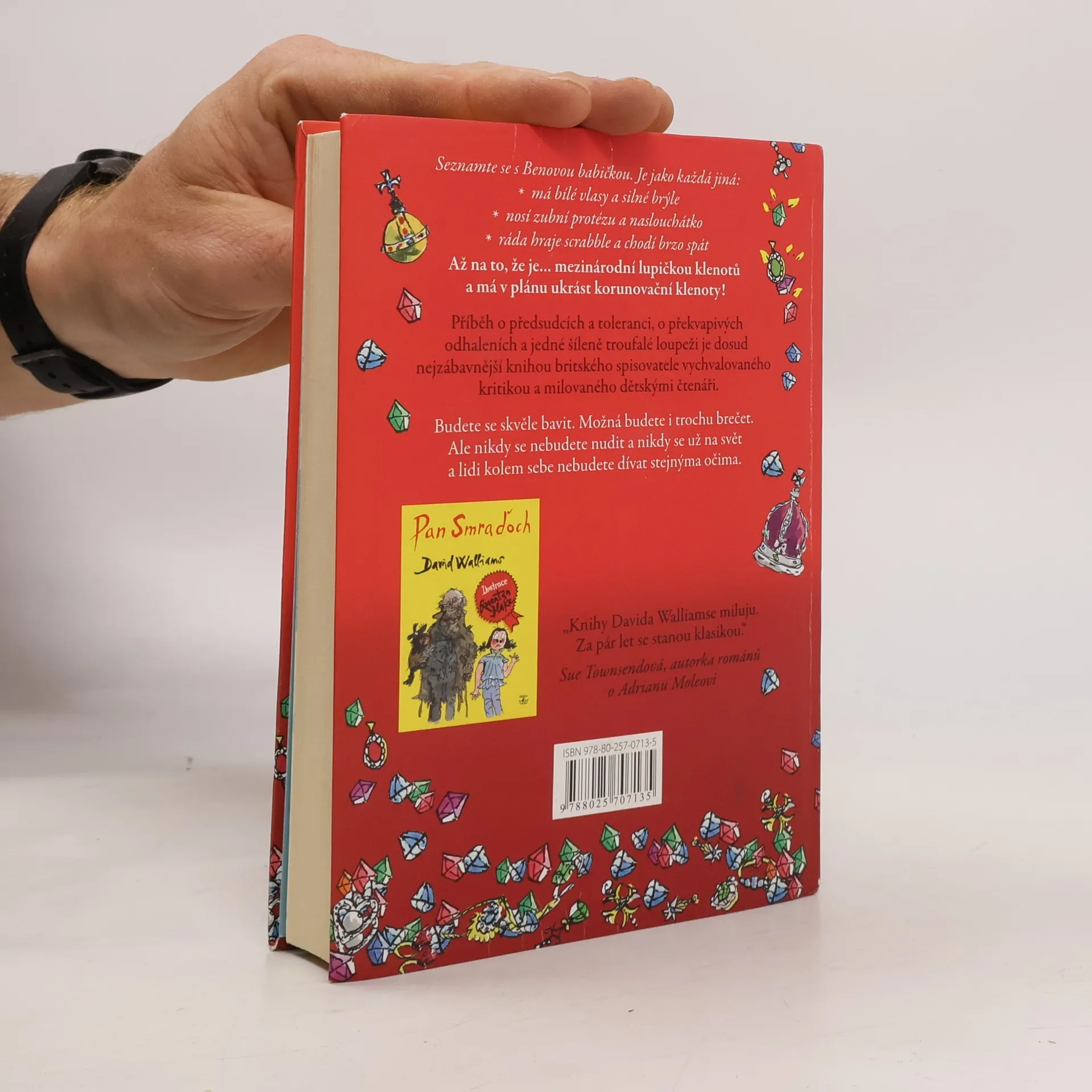 Britského autora dětských knih Davida Walliamse označují kritici za nového Roalda Dahla. Jeho vypravěčsky brilantní příběhy s překvapivou pointou a černým humorem dávají tomuto označení za pravdu. Jako první se k českému čtenáři dostává Babička drsňačka. Vypráví se v ní příběh o předsudcích a toleranci, o překvapivých odhaleních a jedné šíleně troufalé loupeži. Ben je k smrti otrávený, zase má strávit víkend u babičky: "Vždyť je s ní děsná nuda! Se všema starýma je nuda. Telka jí nefunguje, pořád chce jenom hrát scrabble a smrdí kapustou!" Pěkně tvrdý odsudek z úst nezletilce, jenže to ještě Ben netuší dvě věci: 1) Jeho babička kdysi byla proslulou lupičkou šperků. 2) Celý život kula plán, jak ukradnout korunovační klenoty, a teď potřebuje Benovu pomoc!