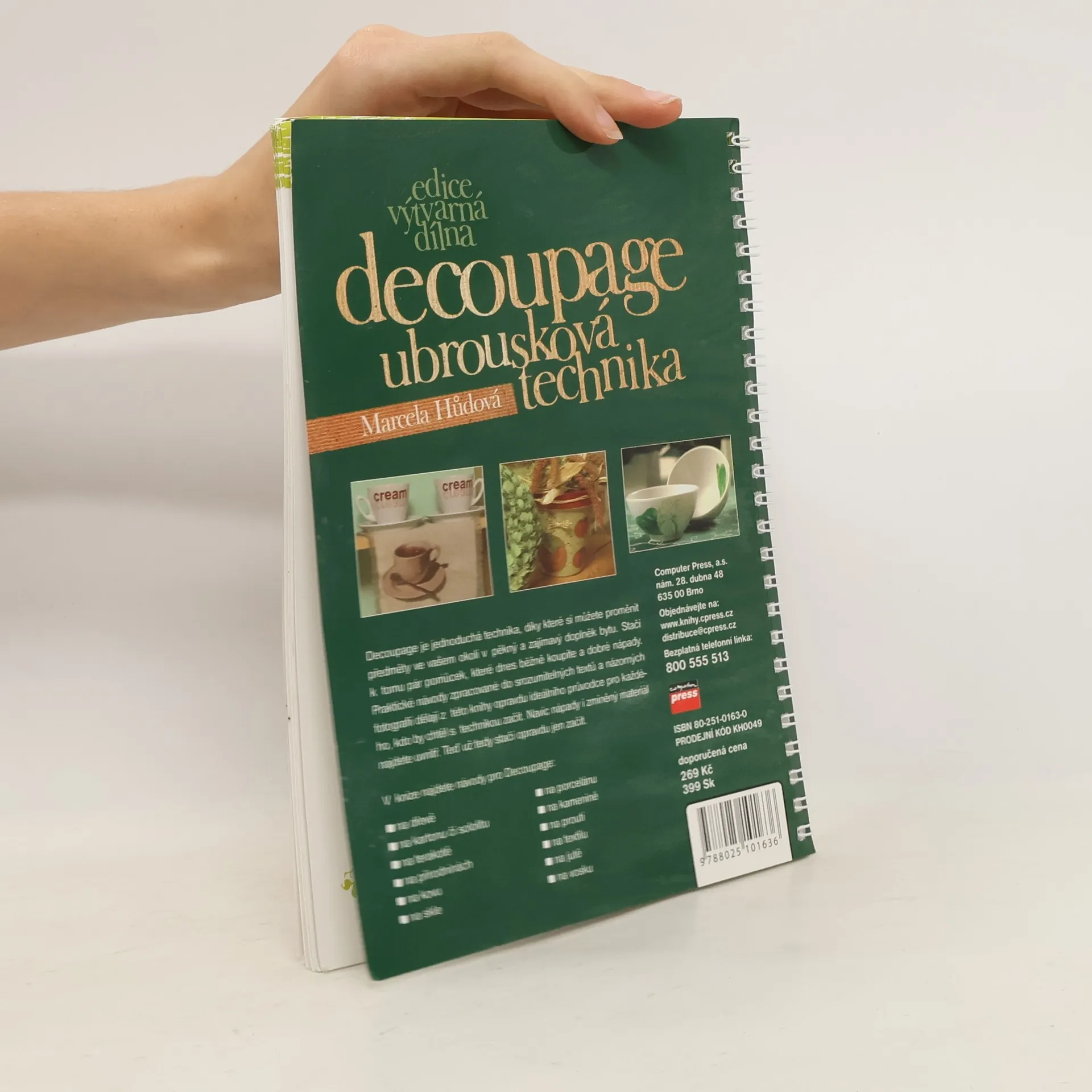 Decoupage je jednoduchá technika, díky které si můžete proměnit předměty ve vašem okolí v pěkný a zajímavý doplněk bytu. Stačí k tomu pár pomůcek, které dnes běžně koupíte a dobré nápady. Praktické návody zpracované do srozumitelných textů a názorných fotografií dělají z této knihy opravdu ideálního průvodce pro každého, kdo by chtěl s technikou začít. Navíc nápady i zmíněný materiál najdete uvnitř. Teď už tedy stačí opravdu jen začít.