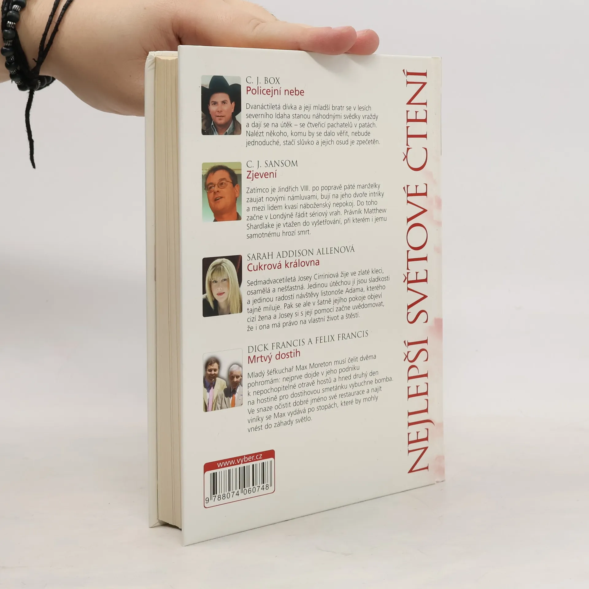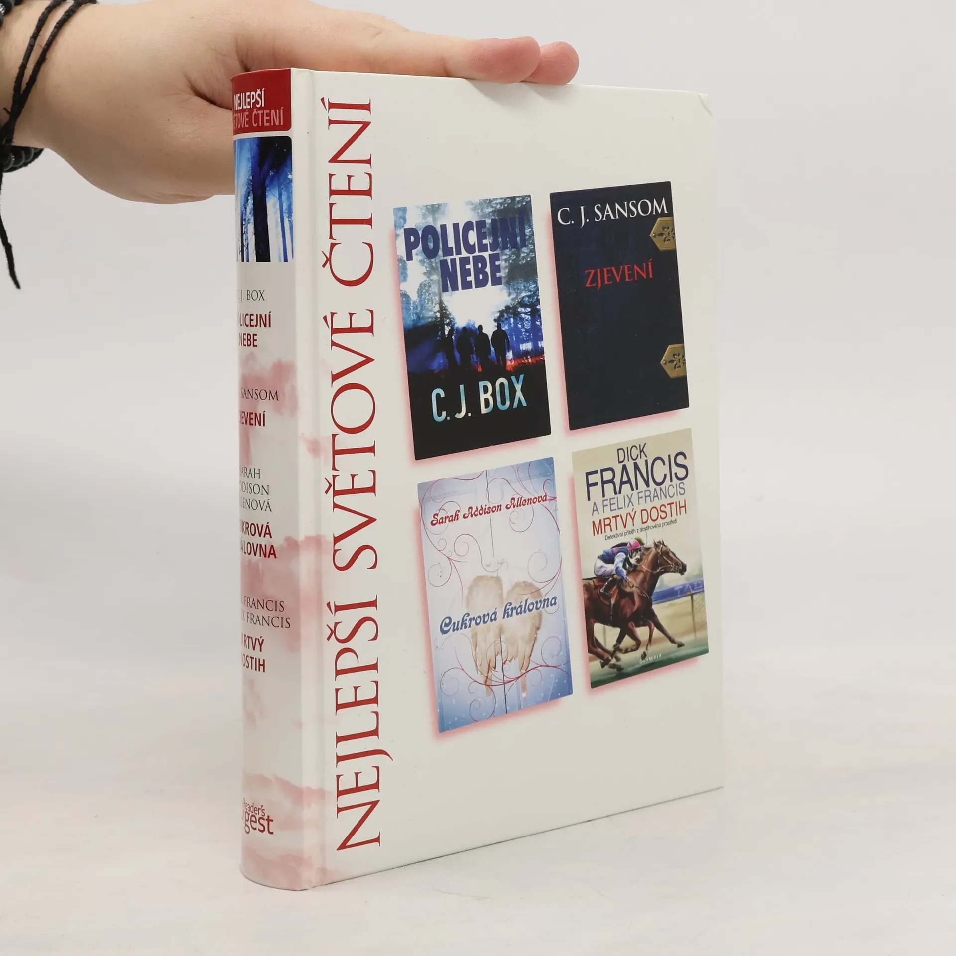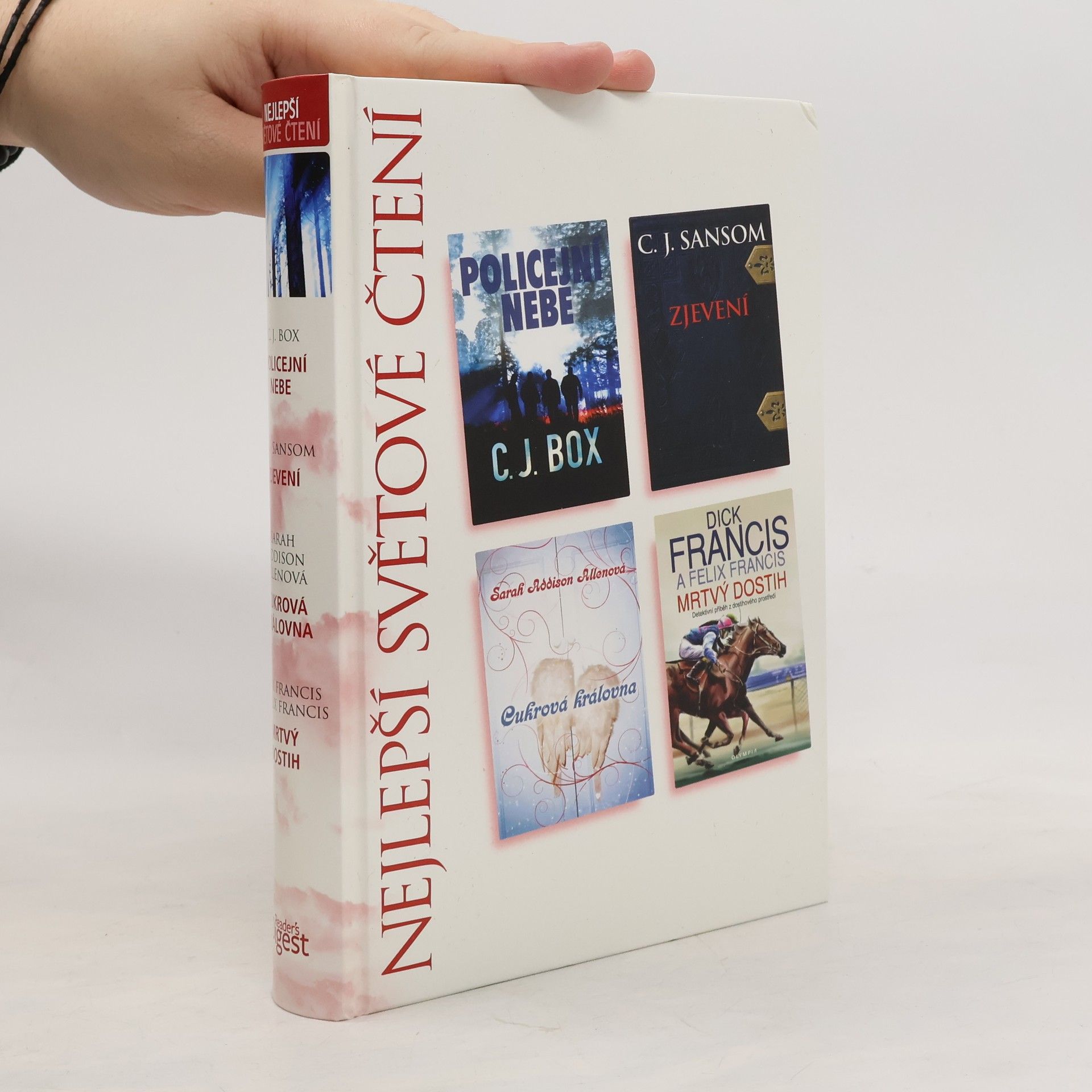 Policejní nebe, Zjevení, Cukrová královna, Mrtvý dostih, C. J. Box, Christopher John Sansom, Sarah Addison Allen, Dick Francis, Felix Francis