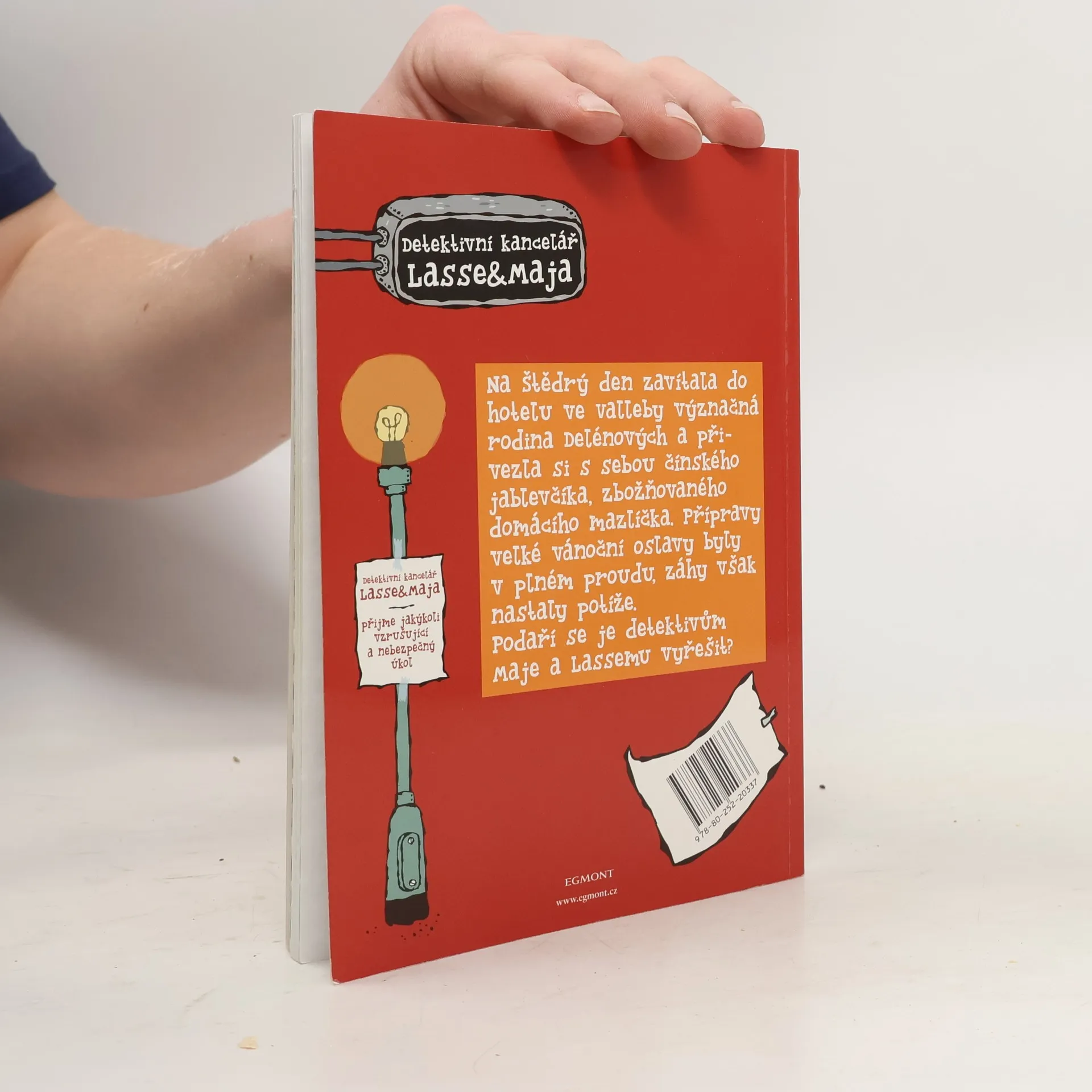 Víte, kdo je to detektiv? Ne? Detektiv je vlastně něco jako policista, jen nenosí uniformu. Pozoruje a sleduje podezřelé osoby, fotografuje a dívá se dalekohledem. A nakonec dopadne zločince. Někteří detektivové nepracují přímo u policie, ale mají svou detektivní kancelář. Takovou si založili i dva kamarádi ze školy Lasse a Maja v malém švédském městečku Valleby. Po ulicích vylepili plakáty, na kterých stálo, že přijmou každý nebezpečný úkol. A vzrušující detektivní případy se brzy začaly jen hrnout! Na Štědrý den zavítala do hotelu ve Valleby význačná rodina Delénových a přivezla si sebou čínského jablevčíka, zbožňovaného domácího mazlíčka. Přípravy velké vánoční oslavy byly v plném proudu, záhy však nastaly potíže. Podaří se je detektivům Maje a Lassemu vyřešit?