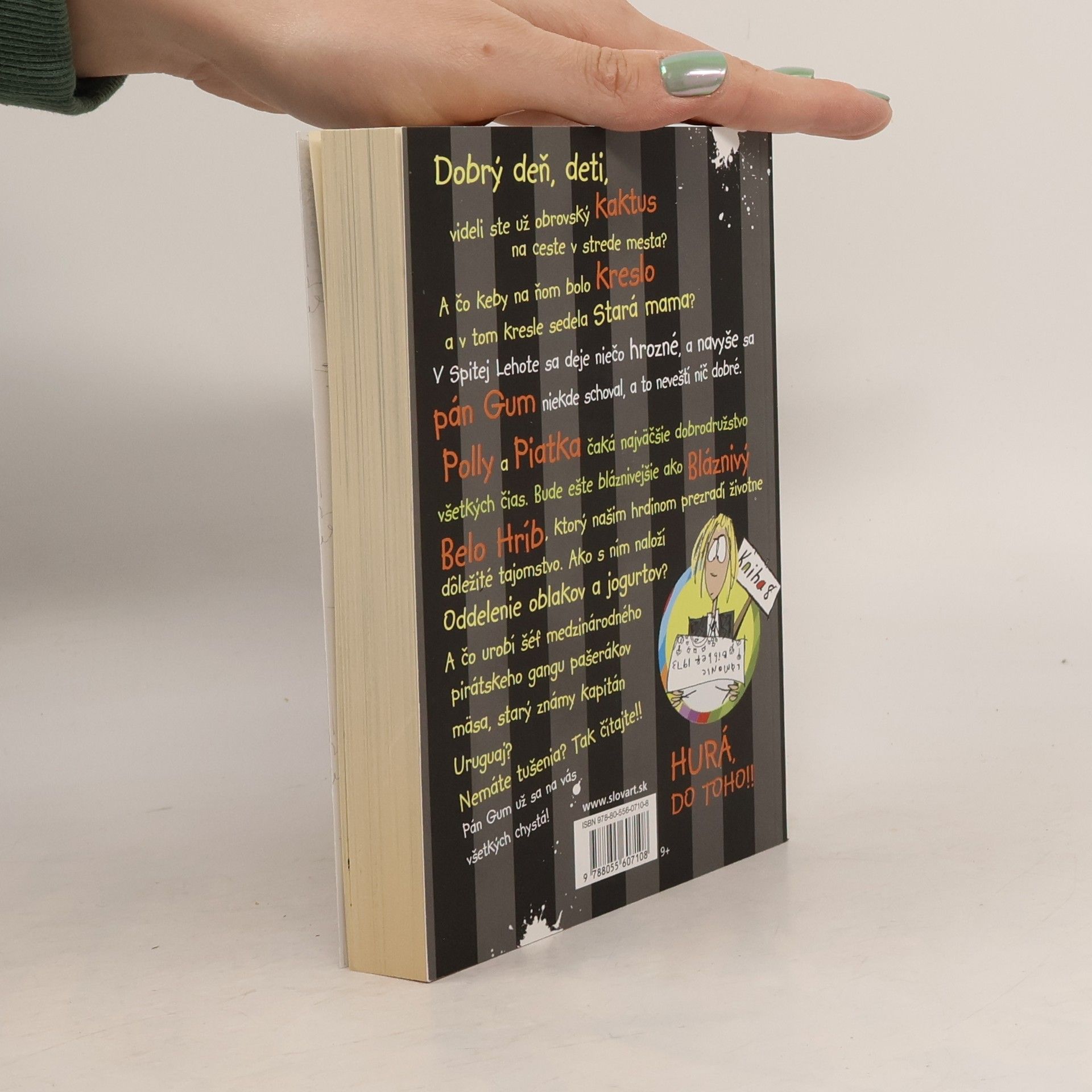 Hovoriace papagáje na strechách? Obrovský kaktus na ulici uprostred mesta? A komáre také nepríjemné, že ich neznášajú ani ich priatelia? V Spitej Lehote sa deje niečo veľmi čudné a navyše nikto nevie, kam sa podel pán Gum. Áno, priatelia, Polly a Piatok čaká najväčšie dobrodružstvo zo všetkých, ktoré doteraz prežili. Tak sa naň pripravte! Bude ešte bláznivejšie ako Bláznivý Belo Hríb, ktorý Polly a Piatkovi prezradí životne dôležitú informáciu. Ako na ňu zareaguje Ministerstvo oblakov a jogurtu? A čo urobí šéf medzinárodného pirátskeho gangu pašerákov mäsa, starý známy kapitán Uruguaj?