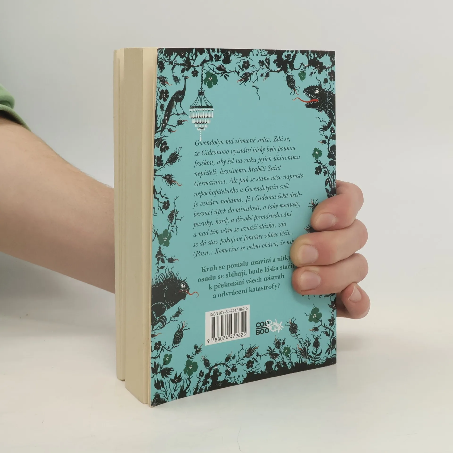 Gwendolyn má zlomené srdce. Zdá se, že Gideonovo vyznání lásky bylo pouhou fraškou, aby šel na ruku jejich úhlavnímu nepříteli, hrozivému hraběti Saint Germainovi. Ale pak se stane něco naprosto nepochopitelného a Gwennin svět je vzhůru nohama. Ji i Gideona čeká dech beroucí úprk do minulosti, a taky menuety, paruky, kordy a divoké pronásledování a nad tím vším se vznáší otázka, zda se dá stav pokojové fontány vůbec léčit…