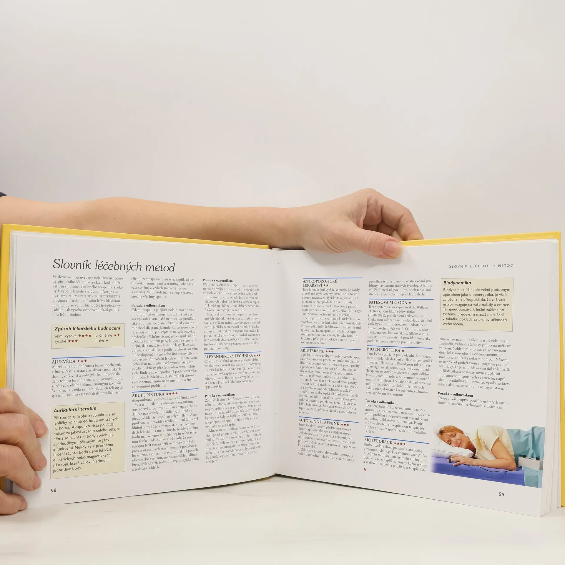 Praktická příručka pro celou rodinu nabízí osvědčené a účinné přirozené prostředky proti více než stovce různých neduhů. Informace v této knize nenahrazují lékařskou péči. Obsahuje moderní poznatky alternativních způsobů léčby přírodními prostředky, což ji činí cenným doplňkem každé domácnosti. Kniha se zaměřuje na otázky jako zbavení se nadváhy, prevence cévních onemocnění, nespavost a stres. Hlavní část, rozdělená na 384 stran, se věnuje jednotlivým zdravotním obtížím a alternativním léčebným metodám, které zahrnují přírodní postupy, prostředky a doporučení. Uvádí také tajemství aromaterapie a jógy. Důležitou součástí je slovník léčebných metod a méně známých termínů, spolu se seznamem kontaktů na centra alternativních léčebných metod. Tato příručka doplňuje informace z publikací jako Jídlo jako jed, jídlo jako lék, Léčivá moc vitaminů či Rodinná encyklopedie alternativní medicíny, a nabízí tak komplexní pohled na alternativní léčbu a přírodní přístupy ke zdraví.