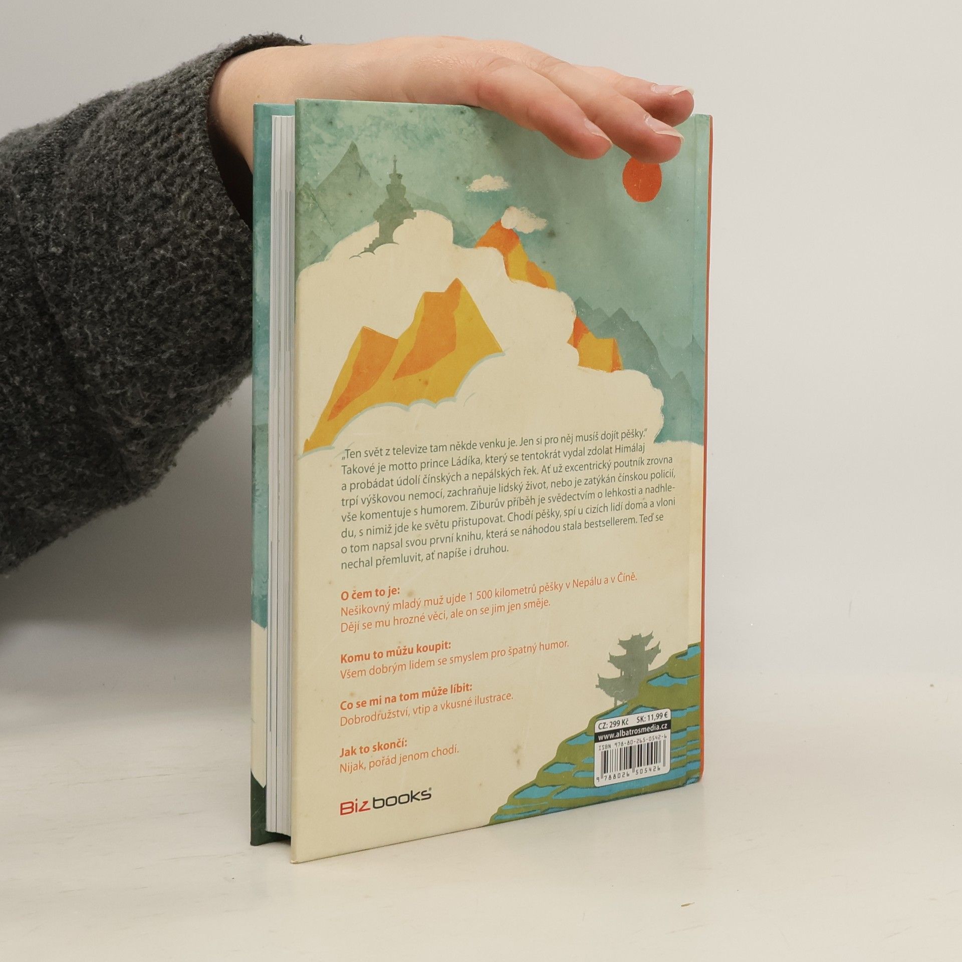 Nešikovný mladý muž ujde 1 500 kilometrů pěšky v Nepálu a v Číně. Dějí se mu hrozné věci, ale on se jim jen směje. Když mi byly tři, rozbil jsem si hlavu o bidet. Když mi bylo devět, rozbil jsem si hlavu o kolo, které jsem vedl do kopce. Myslím, že bych vůbec neměl cestovat, protože jsem hrozně nešikovnej. Ale stejně to dělám. Radši ale chodím pěšky, protože tak je to nejbezpečnější. Jednoduše vyrazím na cestu a čekám, co mě tam potká. Tentokrát jsem se vydal do Číny a Nepálu. V kraťasech ze supermarketu a brýlích z drogerie jsem prošel Himálaj i úplně neznámé vesnice v údolích řek. Mnohokrát jsem spal u úplně cizích lidí doma a poznával, jak se jim doopravdy žije a co jim přináší štěstí. Už na cestě jsem o nich začal psát tuto knihu. Času na psaní byl dostatek, protože ujít pěšky 1 500 kilometrů trvá docela dlouho. Jak si teď po sobě knihu čtu, myslím, že se mi povedlo vytvořit pěkné svědectví o jednoduchosti života a půvabu svobody. Jestli se chcete dozvědět něco o památkách a historii, radši si ji ale nekupujte. Kniha je jen o Číňanech, Nepálcích a jejich životě. A taky trochu o mně. Tomu se člověk nevyhne, když jde sám.