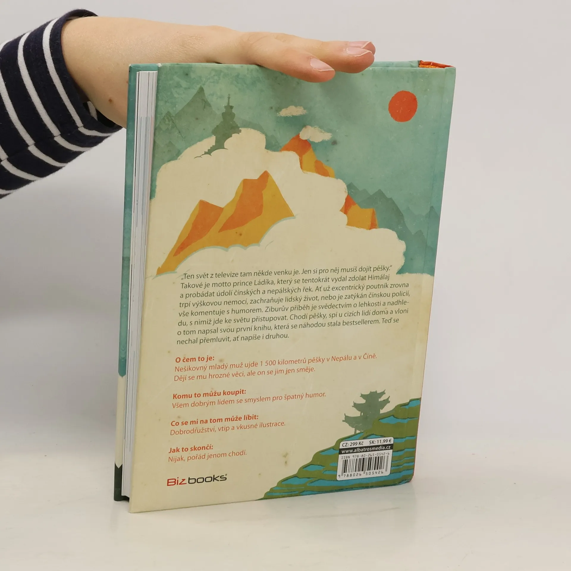 Nešikovný mladý muž ujde 1 500 kilometrů pěšky v Nepálu a v Číně. Dějí se mu hrozné věci, ale on se jim jen směje. Když mi byly tři, rozbil jsem si hlavu o bidet. Když mi bylo devět, rozbil jsem si hlavu o kolo, které jsem vedl do kopce. Myslím, že bych vůbec neměl cestovat, protože jsem hrozně nešikovnej. Ale stejně to dělám. Radši ale chodím pěšky, protože tak je to nejbezpečnější. Jednoduše vyrazím na cestu a čekám, co mě tam potká. Tentokrát jsem se vydal do Číny a Nepálu. V kraťasech ze supermarketu a brýlích z drogerie jsem prošel Himálaj i úplně neznámé vesnice v údolích řek. Mnohokrát jsem spal u úplně cizích lidí doma a poznával, jak se jim doopravdy žije a co jim přináší štěstí. Už na cestě jsem o nich začal psát tuto knihu. Času na psaní byl dostatek, protože ujít pěšky 1 500 kilometrů trvá docela dlouho. Jak si teď po sobě knihu čtu, myslím, že se mi povedlo vytvořit pěkné svědectví o jednoduchosti života a půvabu svobody. Jestli se chcete dozvědět něco o památkách a historii, radši si ji ale nekupujte. Kniha je jen o Číňanech, Nepálcích a jejich životě. A taky trochu o mně. Tomu se člověk nevyhne, když jde sám.
