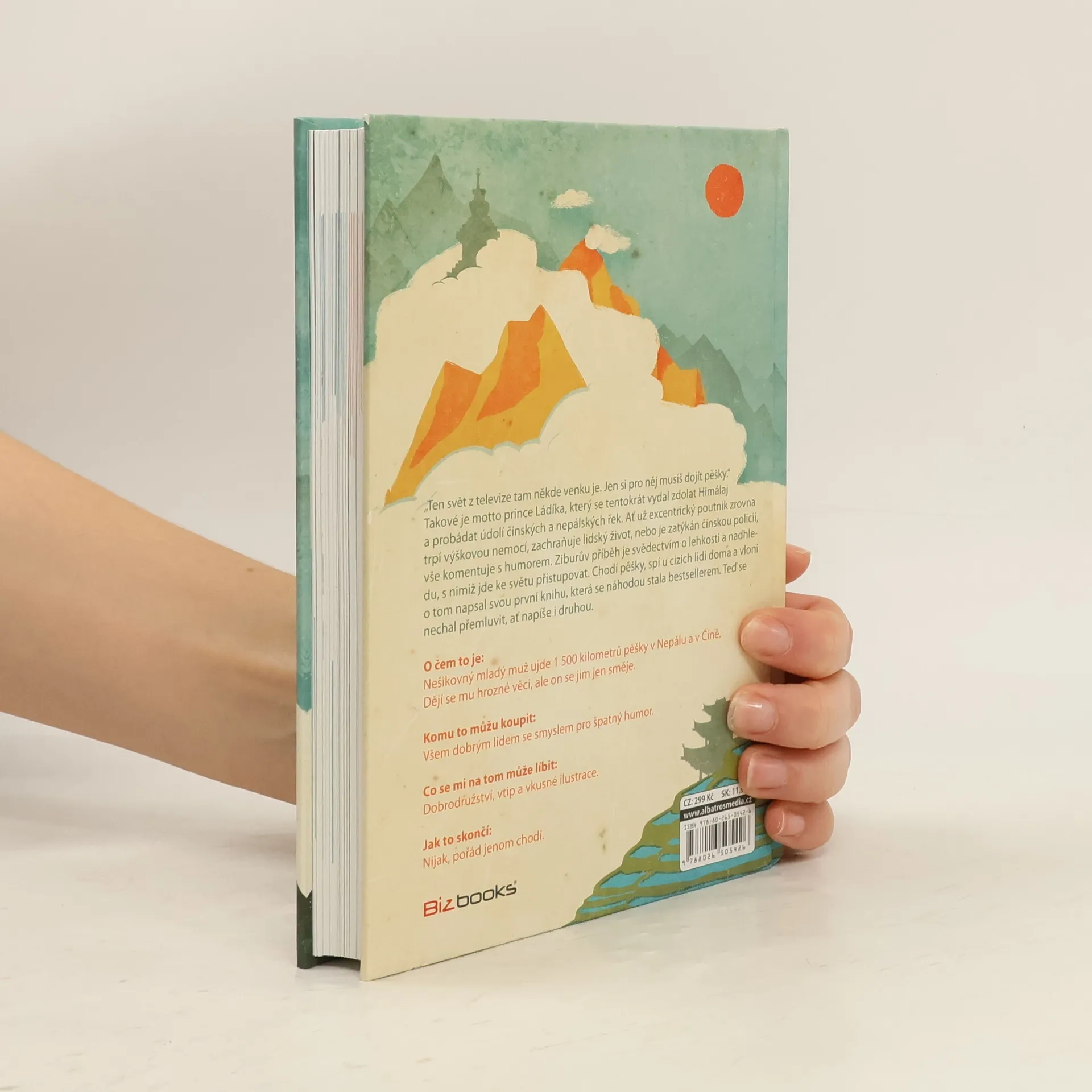 Nešikovný mladý muž ujde 1 500 kilometrů pěšky v Nepálu a v Číně. Dějí se mu hrozné věci, ale on se jim jen směje. Když mi byly tři, rozbil jsem si hlavu o bidet. Když mi bylo devět, rozbil jsem si hlavu o kolo, které jsem vedl do kopce. Myslím, že bych vůbec neměl cestovat, protože jsem hrozně nešikovnej. Ale stejně to dělám. Radši ale chodím pěšky, protože tak je to nejbezpečnější. Jednoduše vyrazím na cestu a čekám, co mě tam potká. Tentokrát jsem se vydal do Číny a Nepálu. V kraťasech ze supermarketu a brýlích z drogerie jsem prošel Himálaj i úplně neznámé vesnice v údolích řek. Mnohokrát jsem spal u úplně cizích lidí doma a poznával, jak se jim doopravdy žije a co jim přináší štěstí. Už na cestě jsem o nich začal psát tuto knihu. Času na psaní byl dostatek, protože ujít pěšky 1 500 kilometrů trvá docela dlouho. Jak si teď po sobě knihu čtu, myslím, že se mi povedlo vytvořit pěkné svědectví o jednoduchosti života a půvabu svobody. Jestli se chcete dozvědět něco o památkách a historii, radši si ji ale nekupujte. Kniha je jen o Číňanech, Nepálcích a jejich životě. A taky trochu o mně. Tomu se člověk nevyhne, když jde sám.