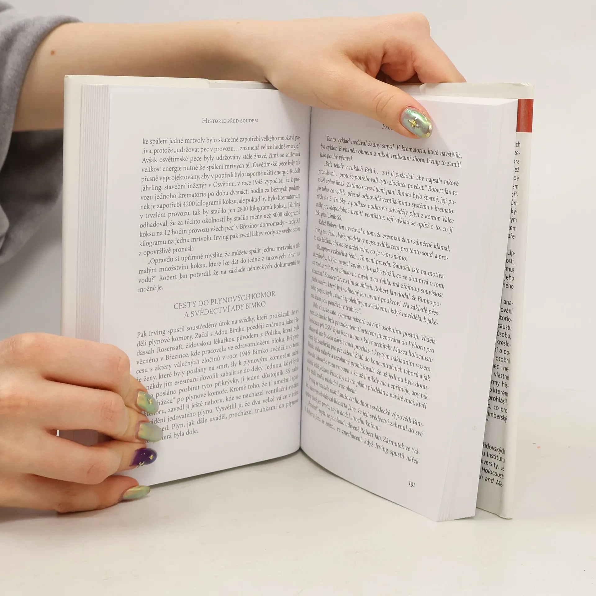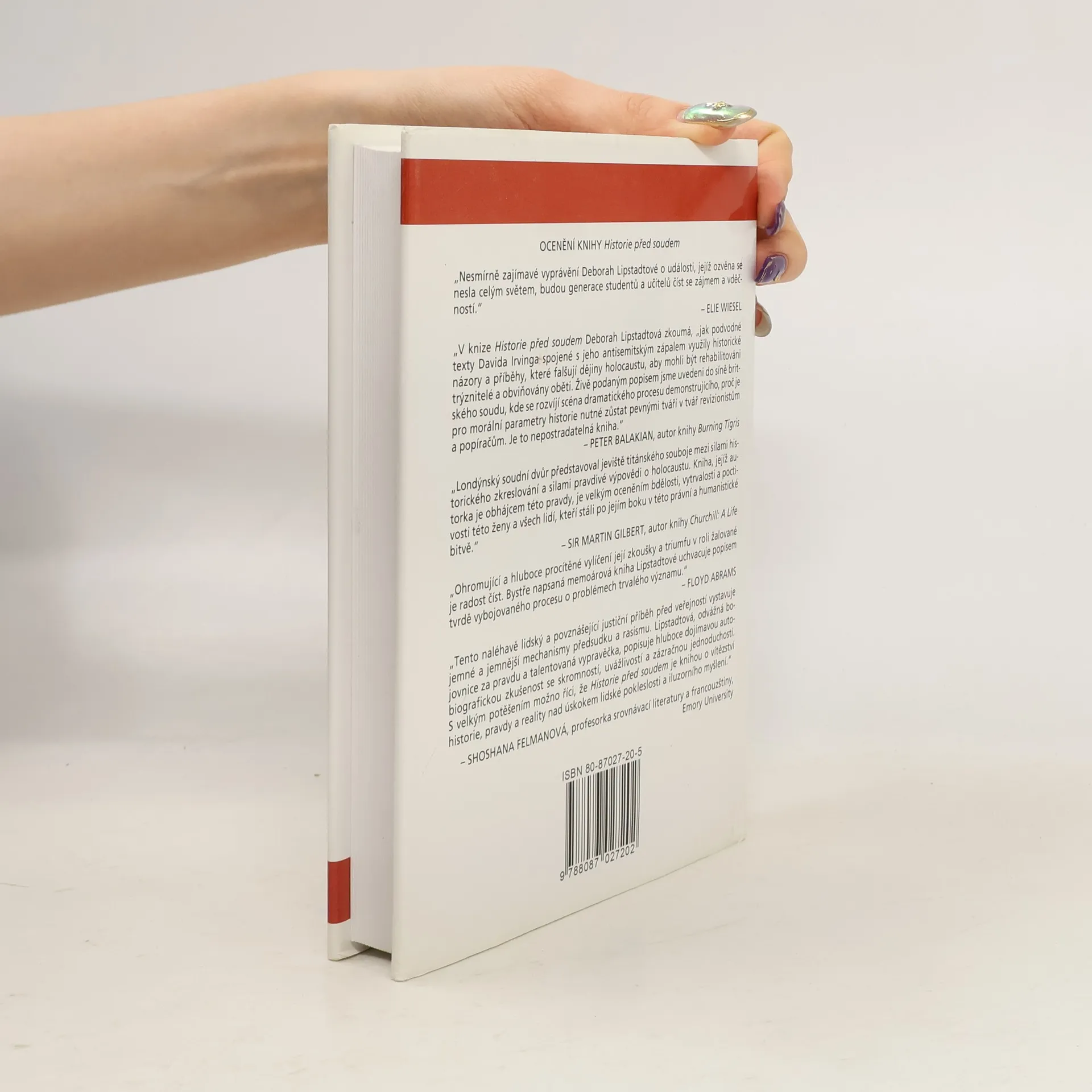 Kniha zaznamenává přípravy a průběh autorčina soudního procesu s Davidem Irvingem, kterého ve své předchozí knize Popírání holocaustu označila za propagátora popíračského hnutí. Irving požadoval omluvu, finančí náhradu a stažení knihy z prodeje, protože jej dehonestuje. Z přebalu: Kniha Historie před soudem, dílem ananlýza historie, dílem výsledek pozorování dramatu v soudní síni, přesahuje historiografii druhé světové války a holocaustu a nastavuje zrcadlo špinavému způsobu, s jakým extremismus a záměrné zkreslování historie získávají široké uznání a pomáhají šířit nenávist. Inspirující osobní příběh úporné vytrvalosti a nakonec i nečekaného obrovského úspěchu je vlastně příběhem procesu testujícího normy historické a právní pravdy. Procesu, o kterém londýnský list Daily Telegraph prohlásil, že "znamená pro nové století to, co pro dřívější generace znamenal norimberský tribunál a proces s Eichmannem".