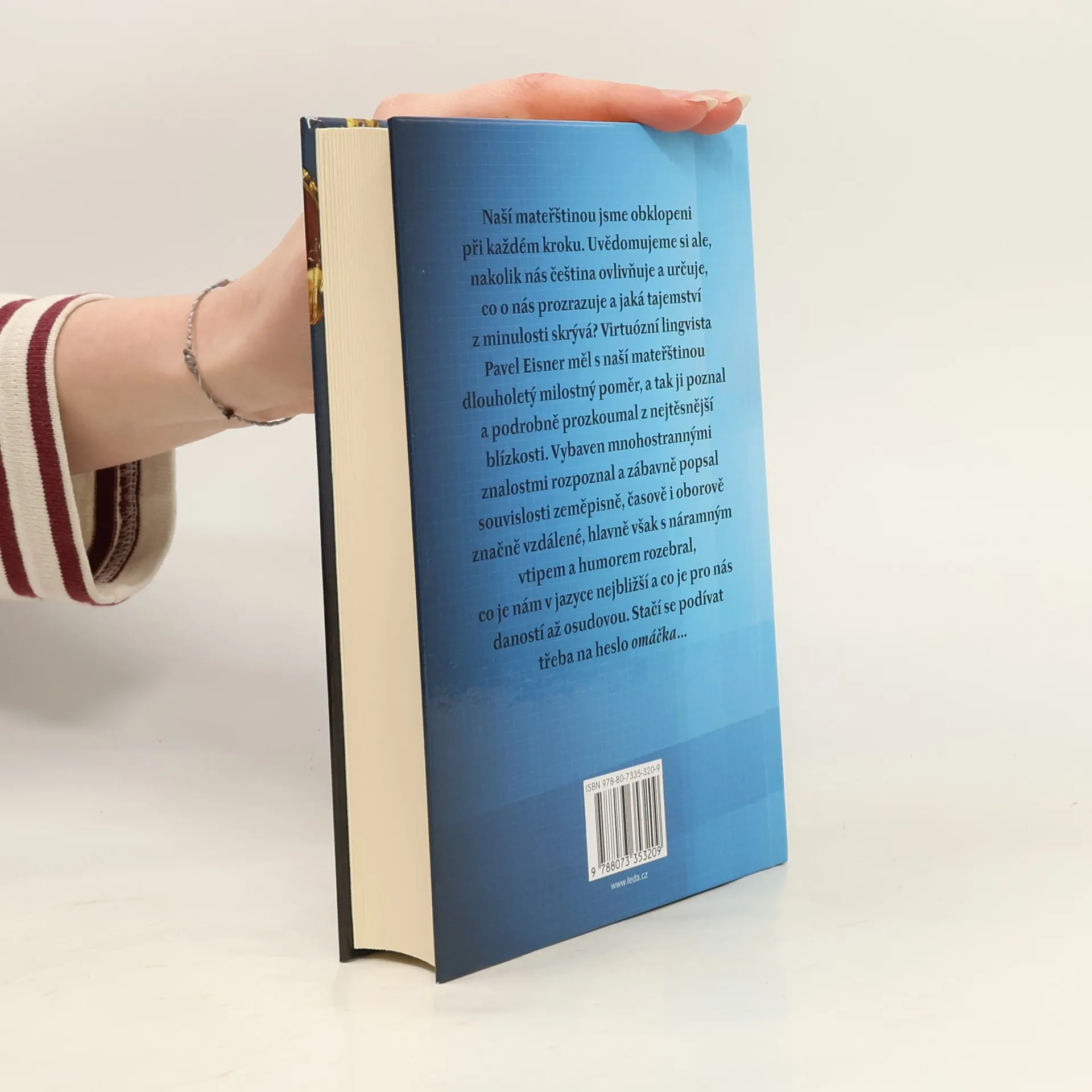 Naší mateřštinou jsme obklopeni při každém kroku. Uvědomujeme si ale, nakolik nás čeština ovlivňuje a určuje, co o nás prozrazuje a jaká tajemství z minulosti skrývá? Virtuózní lingvista Pavel Eisner měl s naší mateřštinou dlouholetý milostný poměr, a tak ji poznal a podrobně prozkoumal z nejtěsnější blízkosti. Vybaven mnohostrannými znalostmi rozpoznal a zábavně popsal souvislosti zeměpisně, časově i oborově značně vzdálené, hlavně však s náramným vtipem a humorem rozebral, co je nám v jazyce nejbližší a co je pro nás daností až osudovou. Stačí se podívat třeba na heslo omáčka…