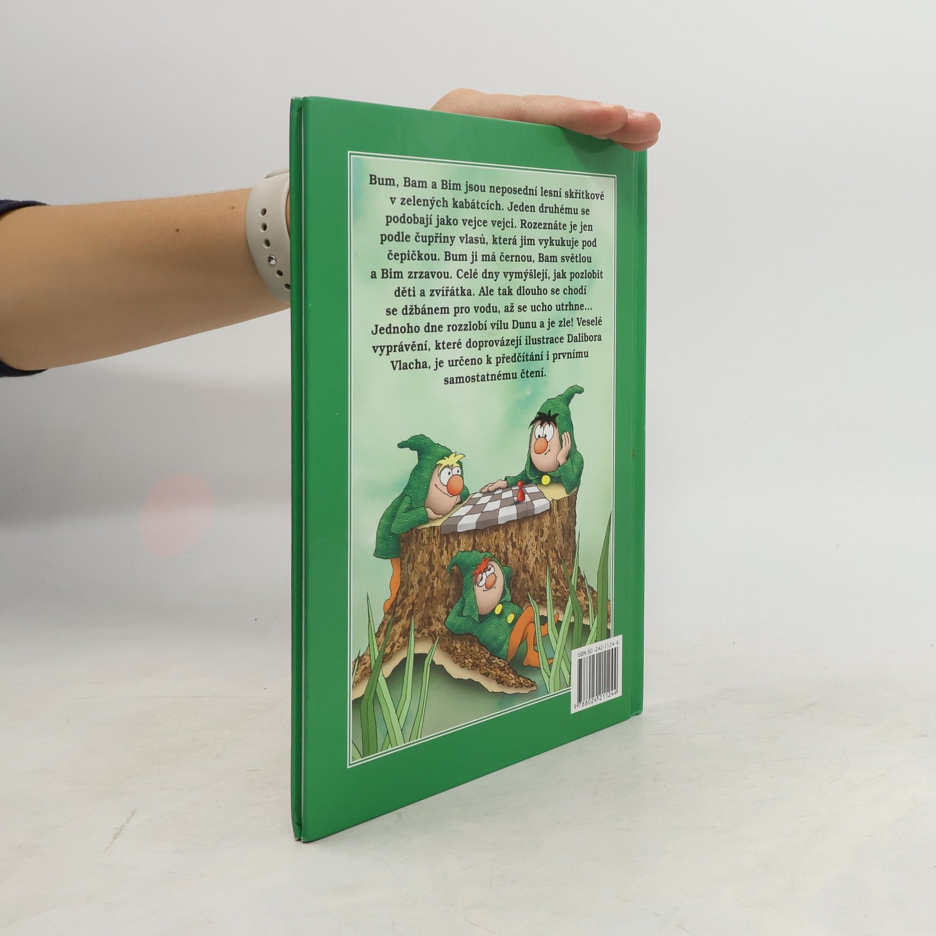 Další svazek edice pro začínající čtenáře přináší pohádkové vyprávění o třech neposedných lesních skřítcích. Už jejich jména - Bum, Bam a Bim - napovídají, že to nejsou žádní svatouškové. Zlobí jako všichni kluci, když však ve svých nezbednostech zajdou moc daleko, nečeká je trest od rodičů, ale od mořské víly Duny. Veselé vyprávění, které je vhodné k předčítání i k nácviku samostatného čtení, doprovázejí vtipné ilustrace Dalibora Vlacha.