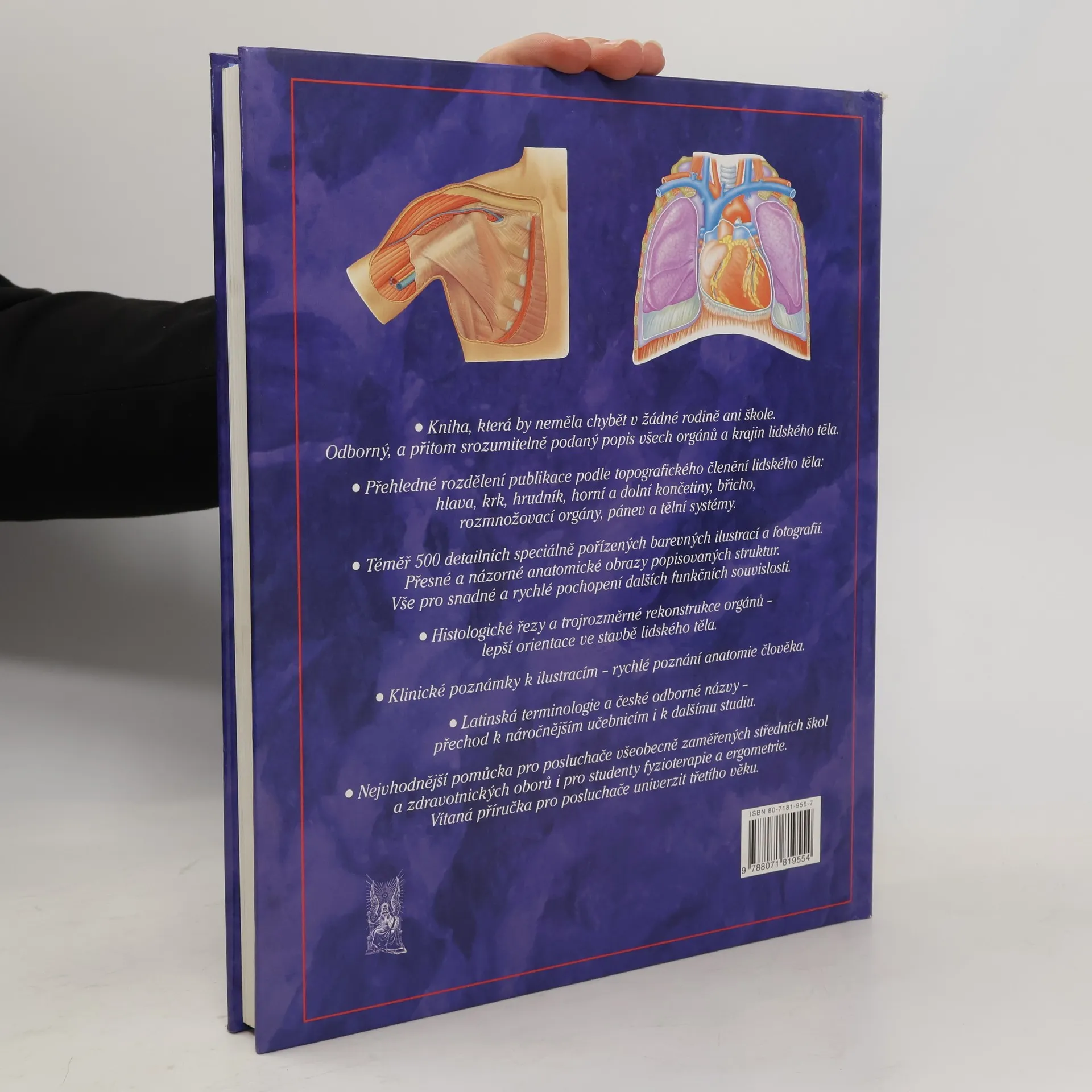 Kniha, která by neměla chybět v žádné rodině ani škole. Odborně, a přitom srozumitelně popisuje všechny orgány a krajiny lidského těla. Je velmi přehledně rozdělena, a to podle topografického členění lidského těla: hlava, krk, hrudník, horní a dolní končetiny, břicho, rozmnožovací orgány, pánev a tělní systémy. Poznejte své tělo díky téměř 500 detailních speciálně pořízených barevných ilustrací a fotografií.
