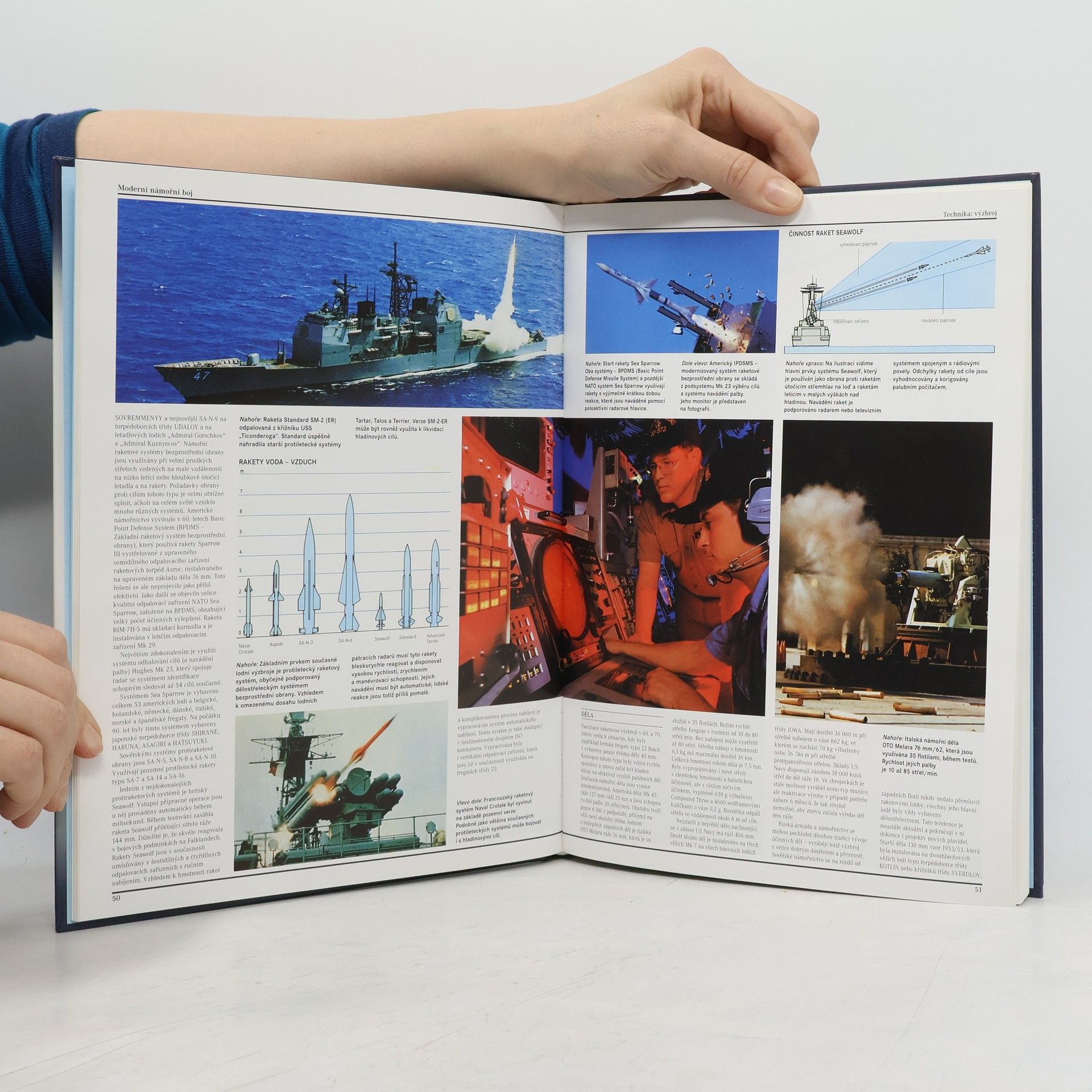 Výpravná obrazová publikace o námořní taktice, konstrukci, vybavení a výzbroji jednotlivých tříd letadlových a bitevních lodí, doprovodných hladinových plavidel i ponorek na přelomu 80. a 90. let minulého století. Obsáhlé samostatné části autoři zaměřili na námořní techniku a taktiku, nejvíce prostoru dostalo třiačtyřicet abecedně uspořádaných kategorií plavidel a ponorek vojenského námořnictva Spojených států, Sovětského svazu, Velké Británie, Francie a dalších zemí. Někoho více zaujme konstrukce, pohon, zbraňové systémy a detekční zařízení na moderních lodích, jiného vývoj taktiky námořních bitev, nasazení námořního letectva či prostředky pro obtížný boj s nebezpečnými ponorkami. Technická data a popis charakteristických typů plavidel doplňují velké názorné kresby a fotografie.