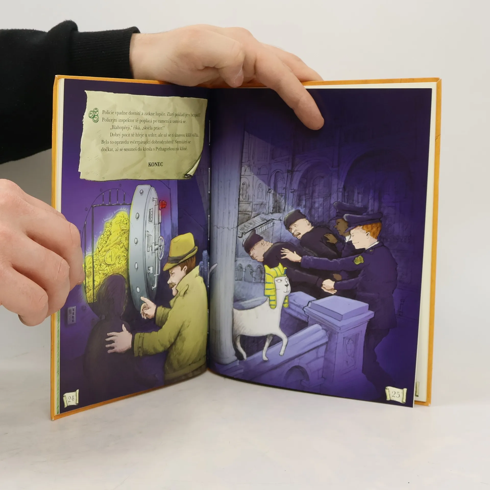 Tato knížka přenese malého čtenáře do Muzea záhad, kde se schyluje k loupeži zlatého pokladu. Napínavý příběh ho rychle vtáhne do děje. Podaří se mu pomocí matematických znalostí a bystré mysli poklad před lupiči zachránit? Jestli někdy zaváhá, nevadí, je tu ještě muzejní kočka Pythagorka, která mu ráda podá pomocnou tlapku. Knížky z edice Dobrodružná matematika jsou specifické svou formou - nečtou se chronologicky po stránkách za sebou, ale čtenář listuje a posupuje podle toho, jak řeší jednotlivé úkoly. Se správnou odpovědí se posune dál v ději příběhu, vinou špatné odpovědi zabloudí, ale je nasměrován k opětovnému řešení úlohy.