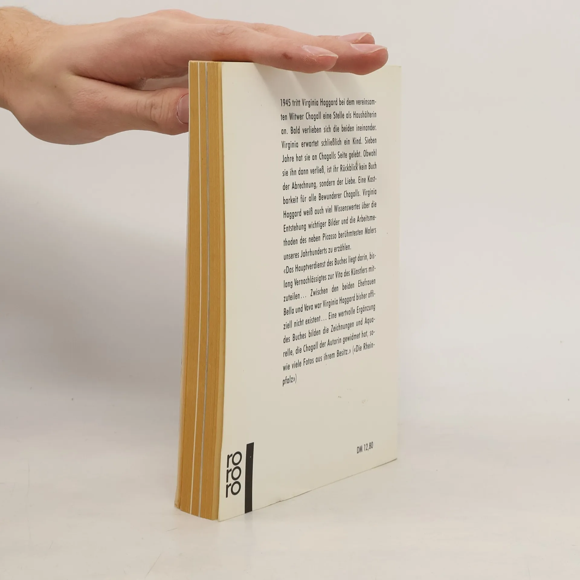 1945 tritt Virginia Haggard bei dem vereinsamten Witwer Chagall eine Stelle als Haushälterin an. Bald verlieben sich die beiden ineinander. Virginia erwartet schließlich ein Kind. Sieben Jahre hat sie an Chagalls Seite gelebt. Obwohl sie ihn dann verließ, ist ihr Rückblick kein Buch der Abrechnung, sondern der Liebe. Eine Kostbarkeit für alle Bewunderer Chagalls. Virginia Haggard weiß auch viel Wissenswertes über die Entstehung wichtiger Bilder und die Arbeitsmethoden des neben Picasso berühmtesten Malers unseres Jahrhunderts zu erzählen.