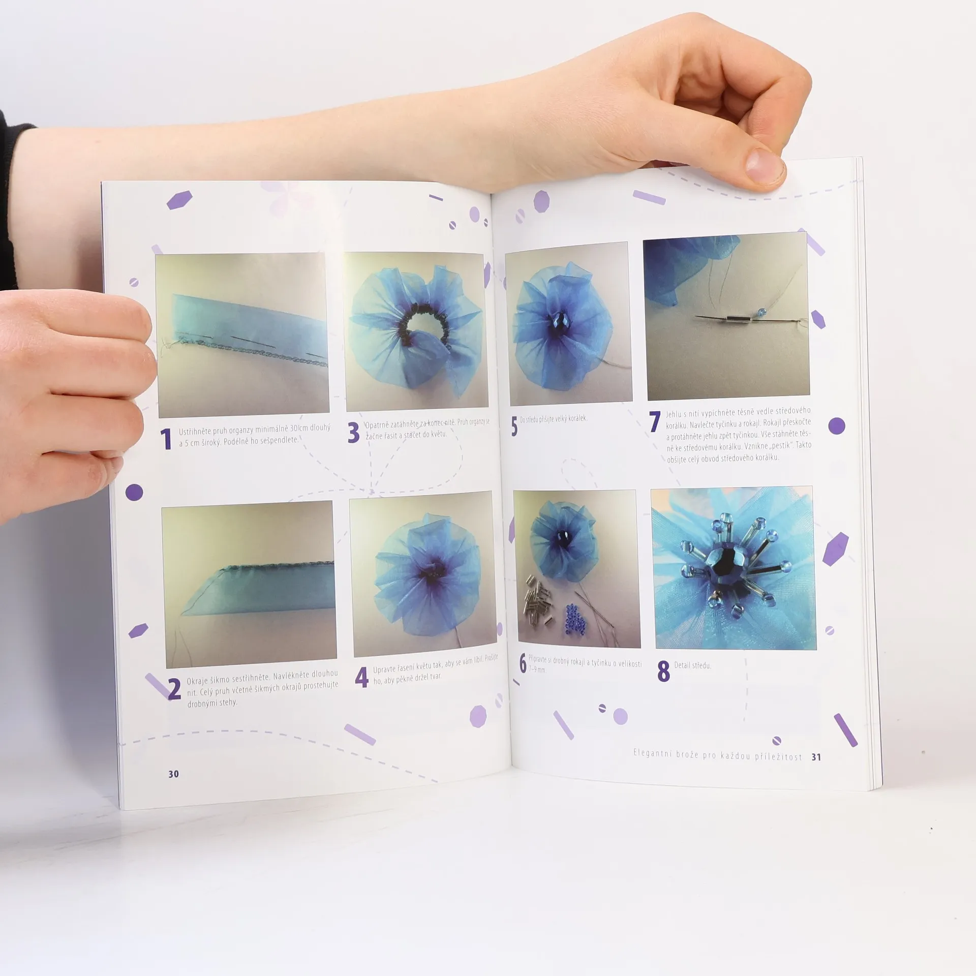 Pokud vám připadá vaše oblečení příliš fádní, nevýrazné, bez nápadu a rádi byste ho něčím oživili, je tato kniha určena právě pro vás. Najdete v ní podrobné návody na výrobu téměř 30 originálních broží nejrůznějších tvarů a barev.