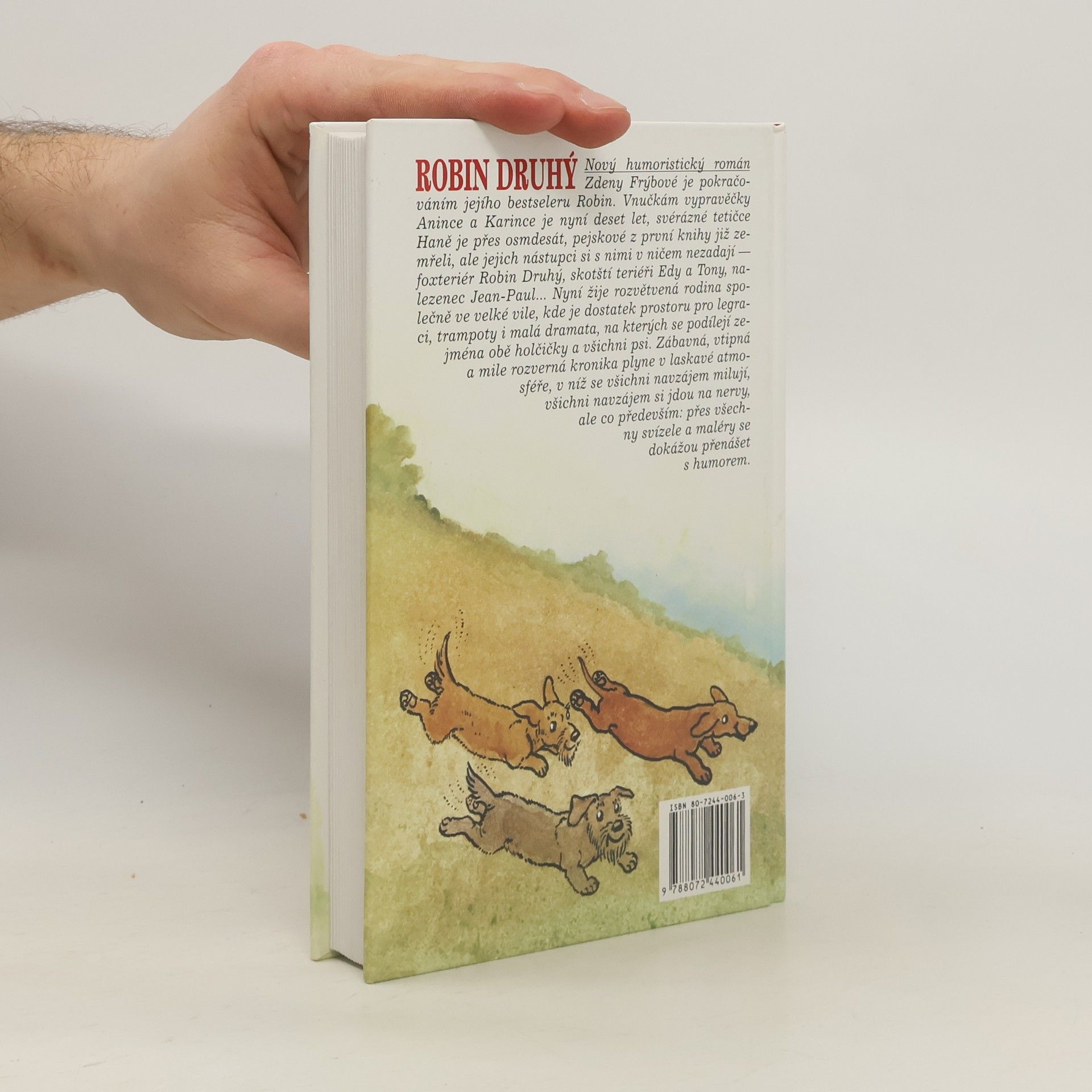 Robin druhý je pokračováním bestseleru Robin. Vnučkám vypravěčky Anince a Karince je nyní deset let, svérázné tetičce Haně je přes osmdesát, pejskové z první knihy již zemřeli, ale jejich nástupci si s nimi v ničem nezadají - foxteriér Robin Druhý, skotští teriéři Edy a Tony, nalezenec Jean-Paul.. Nyní žije rozvětvená rodina společně ve velké vile, kde je dostatek prostoru pro legraci, trampoty i malá dramata, na kterých se podílejí zejména obě holčičky a všichni psi. Zábavná, vtipná a mile rozverná kronika plyne v laskavé atmosféře, v níž se všichni navzájem milují, všichni navzájem si jdou na nervy, ale co především: přes všechny svízele a maléry se dokážou přenášet s humorem.