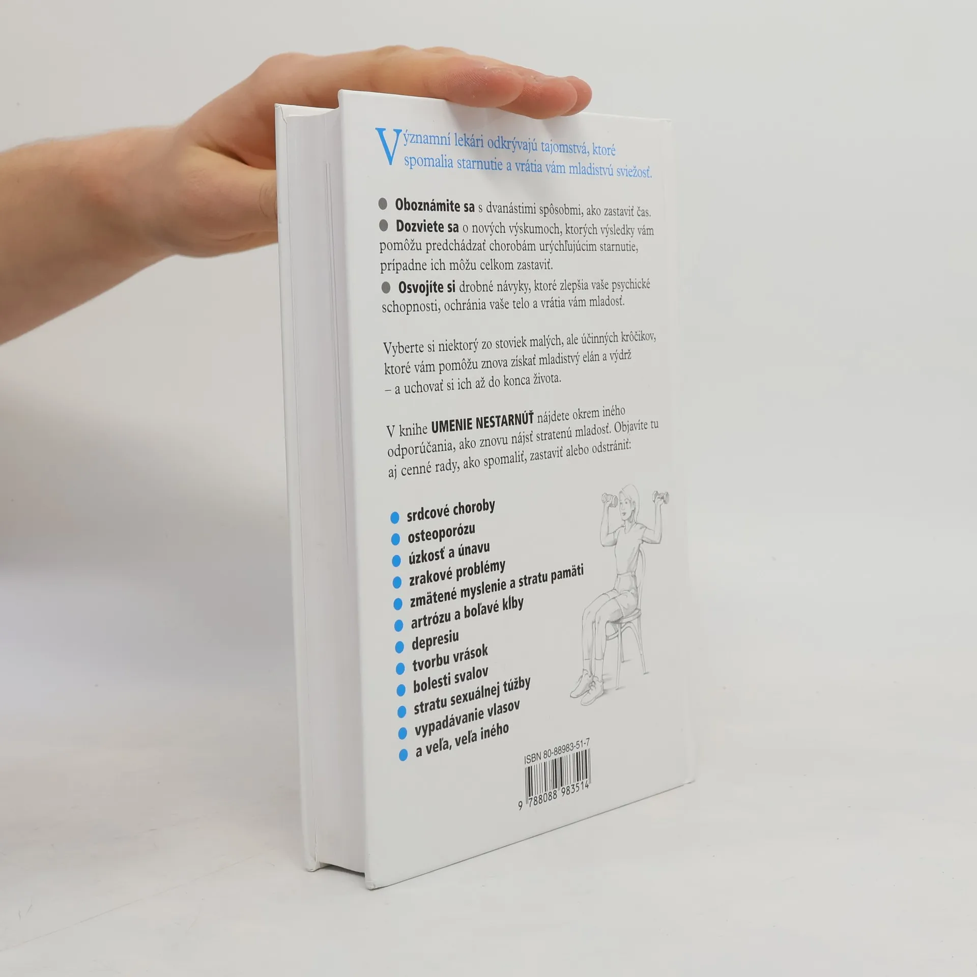 Prečo vyzerať a cítiť sa na svoj vek, keď existujú moderné spôsoby, ako si zlepšiť pamäť a myslenie, vyhladiť vrásky, chrániť sa pred chorobami ohrozujúcimi život a predovšetkým, ako si udržať mladistvého ducha? Kniha prináša stovky nenáročných, ale účinných metód, ktoré môžu pomôcť vrátiť mladosť a uchovať si ju po celý život. Špičkoví lekári a odborníci radia, ako sa popasovať s vekom.