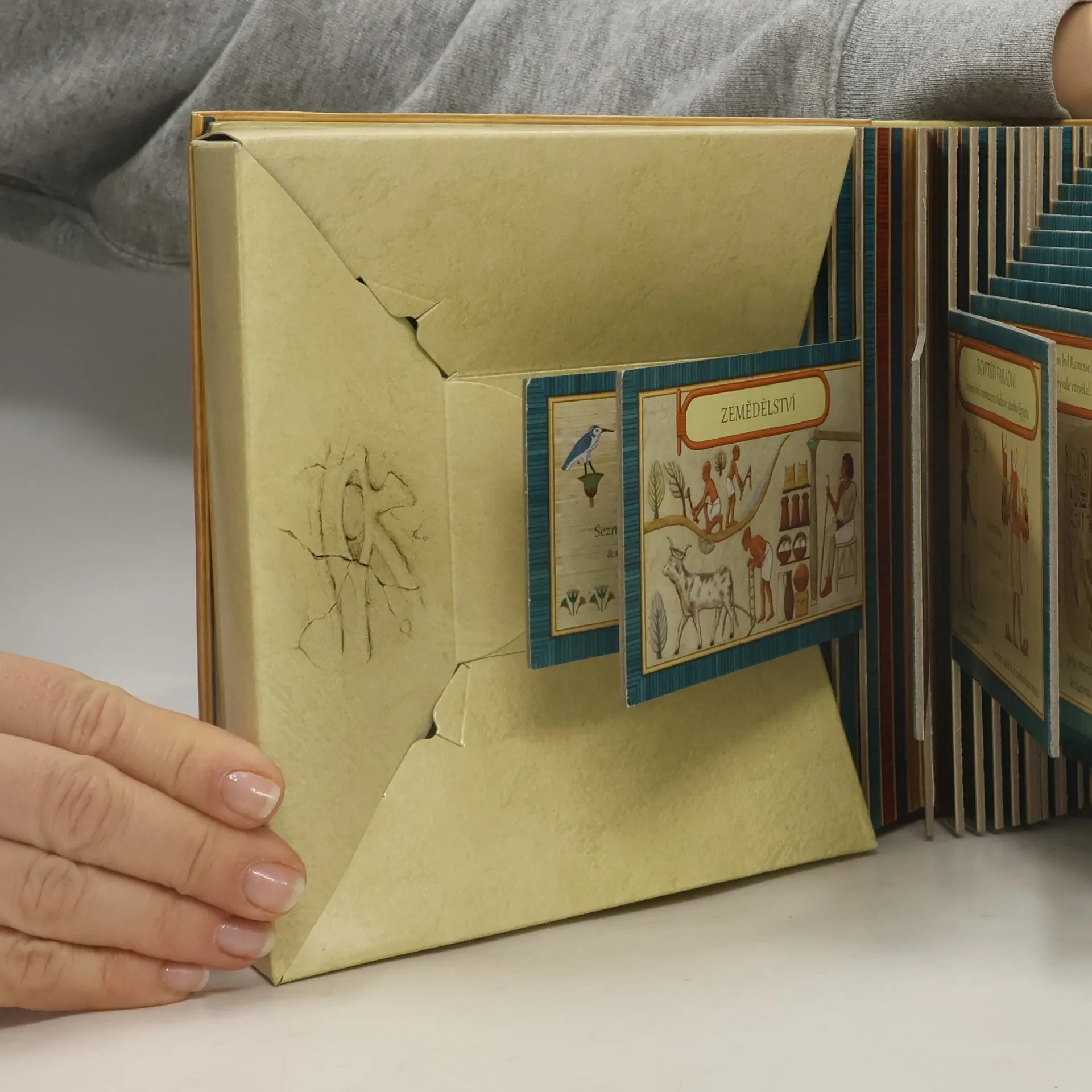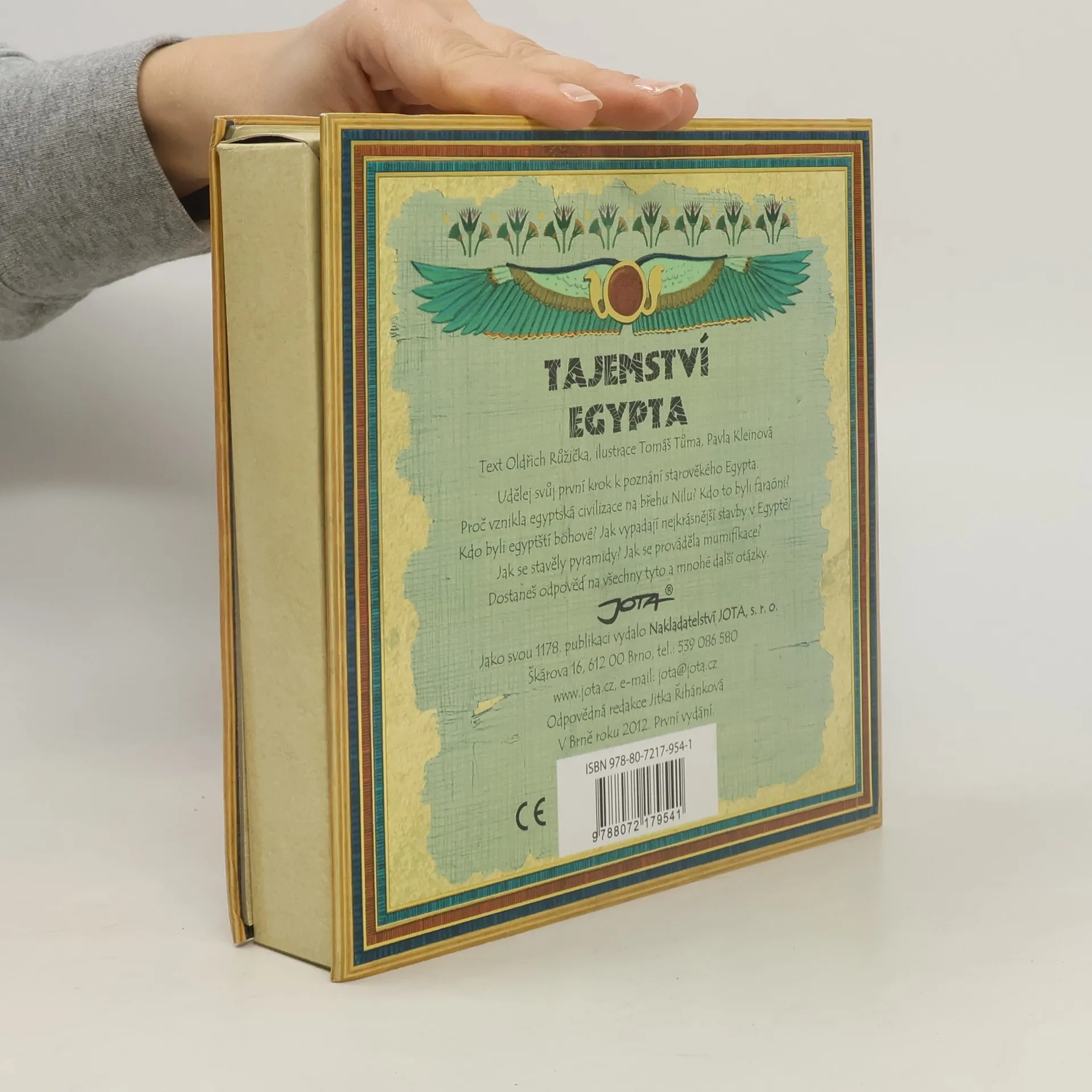 Všichni malí archeologové, pozor! Egyptské pyramidy odhalují svá dávná tajemství – objevte záhady skryté v pohřebních komorách egyptských faraónů! Originálně řešená prostorová knížka ve tvaru pyramidy seznámí malé čtenáře s vyspělou egyptskou civilizací, která přitahuje pozornost mnoha generací. S pomocí názorných ilustrací se děti seznámí se základními pojmy, dozvědí se, kdo byli faraónové, jaké uctívali bohy, proč tato starověká civilizace vznikla právě na březích Nilu, jakým tajemstvím jsou opředeny pyramidy či jak probíhal posvátný proces mumifikace. Poznají nejznámější egyptské pyramidy, k nimž v současnosti směřují kroky tisíců turistů, a zatouží tuto pozoruhodnou zemi navštívit také. Co všechno se děti v knize dozvědí: * jak vznikla egyptská civilizace * co to znamenalo být faraónem * jaké bohy Egypťané uctívali * jak vypadaly nejkrásnější egyptské stavby * jak se stavěly pyramidy * jaké poklady byly nalezeny v Údolí králů * jak se prováděla mumifikace Prostorová kniha ve tvaru pyramidy je určena všem malým archeologům od 7 let.