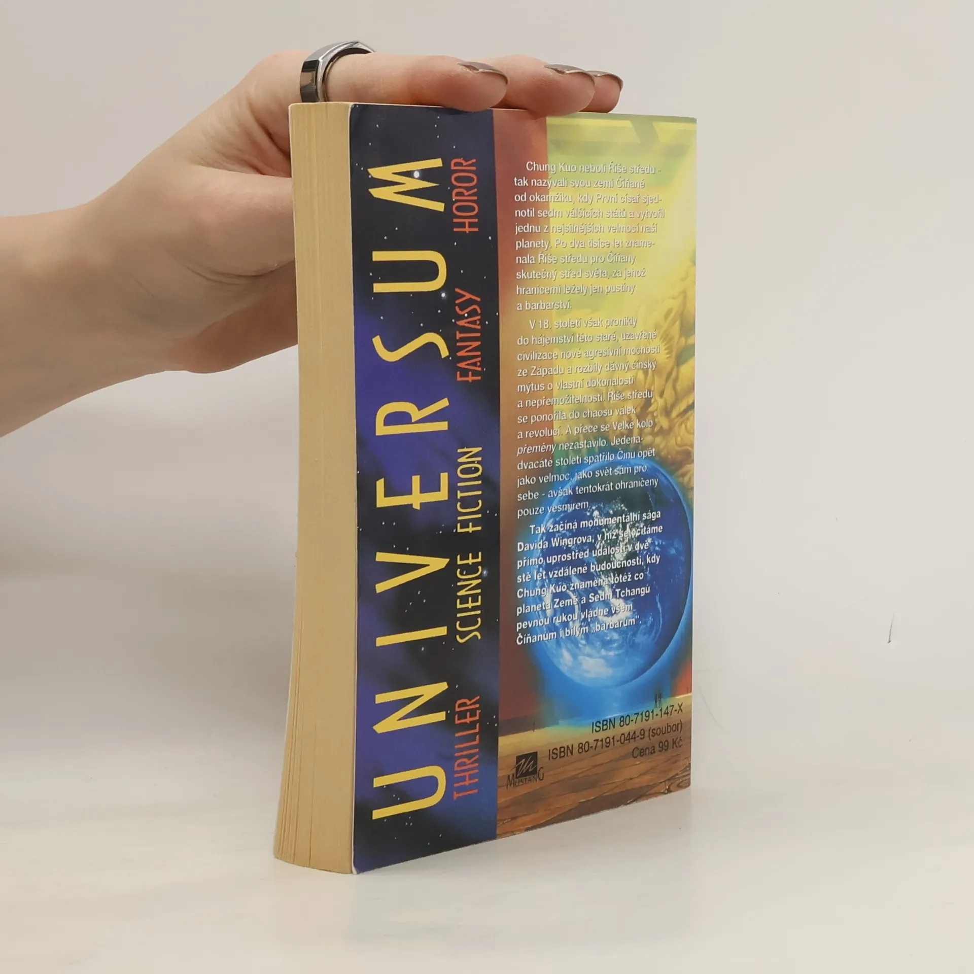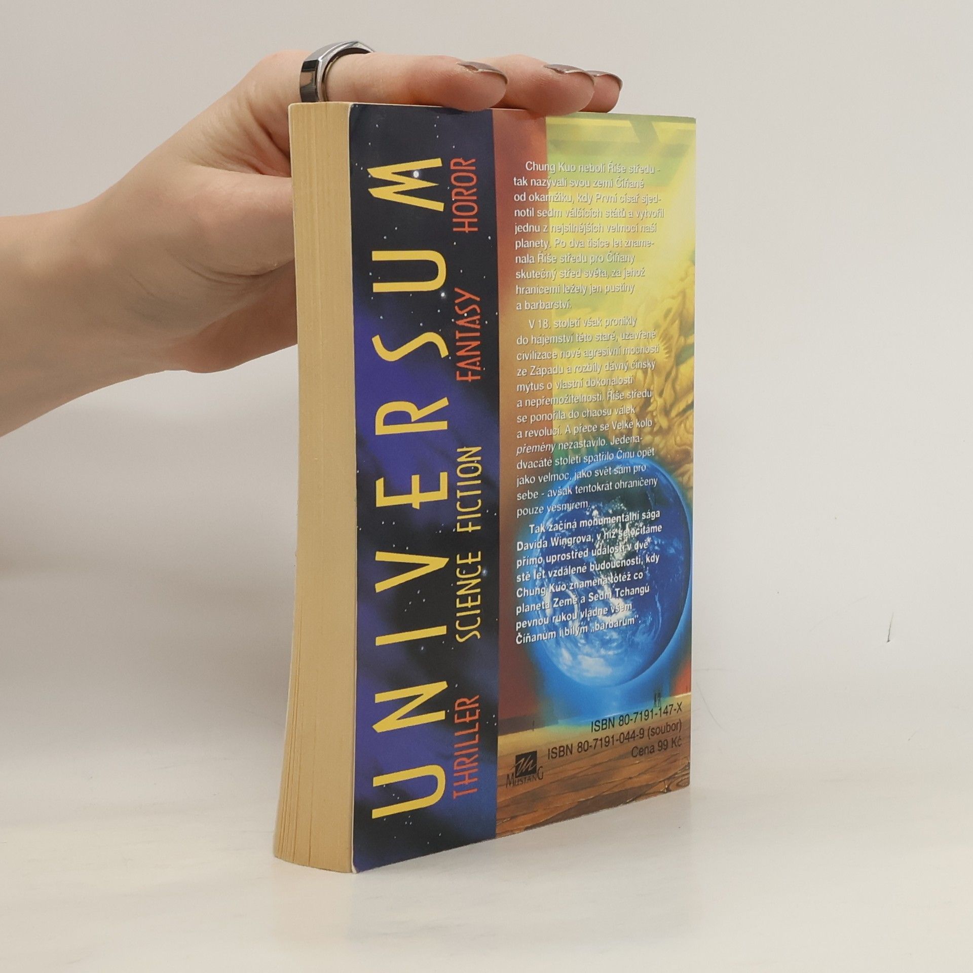 Třetí díl série. Chung Kuo neboli Říše středu – tak nazývali svou zemi Číňané od okamžiku, kdy První císař sjednotil sedm válčících států a vytvořil jednu z nejsilnějších velmocí naší planety. Po dva tisíce let znamenala Říše středu pro Číňany skutečný střed světa, za jehož hranicemi ležely jen pustiny a barbarství. V 18. století však pronikly do hájemství této staré, uzavřené civilizace nové agresivní mocnosti ze Západu a rozbily dávný čínský mýtus o vlastní dokonalosti a nepřemožitelnosti. Říše středu se ponořila do chaosu válek a revolucí. A přece se Velké kolo přeměny nezastavilo. Jedenadvacáté století spatřilo Čínu opět jako velmoc, jako svět sám pro sebe – avšak tentokrát ohraničený pouze vesmírem. Tak začíná monumentální sága Davida Wingrova, v níž se ocitáme přímo uprostřed událostí v dvě stě let vzdálené budoucnosti, kdy Chung Kuo znamená totéž co planeta Země a Sedm Tchangů pevnou rukou vládne všem Číňanům i bílým „barbarům“.... celý text