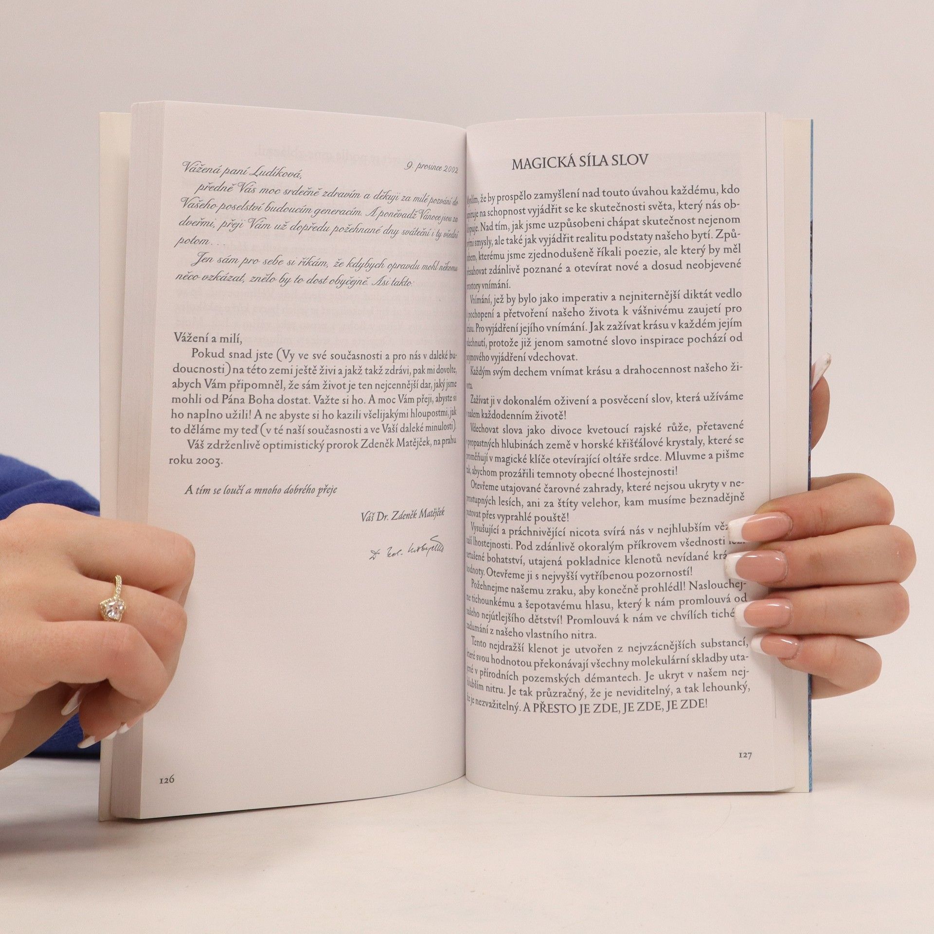 Vícejazyčná kniha shromažďuje příspěvky českých i zahraničních autorů, které mají vyjadřovat jejich poselství budoucím generacím. Česká spisovatelka a překladatelka katolické orientace oslovila v roce 2000 řadu osobností naší i cizí kultury, aby se pokusili vyjádřit svou představu smyslupného života. Tak vznikl sborník originálních vzkazů budoucím generacím i případným obyvatelům vesmíru, který soustřeďuje v rámci náboženských principů představu autorů o důstojném životě člověka na zemi.
