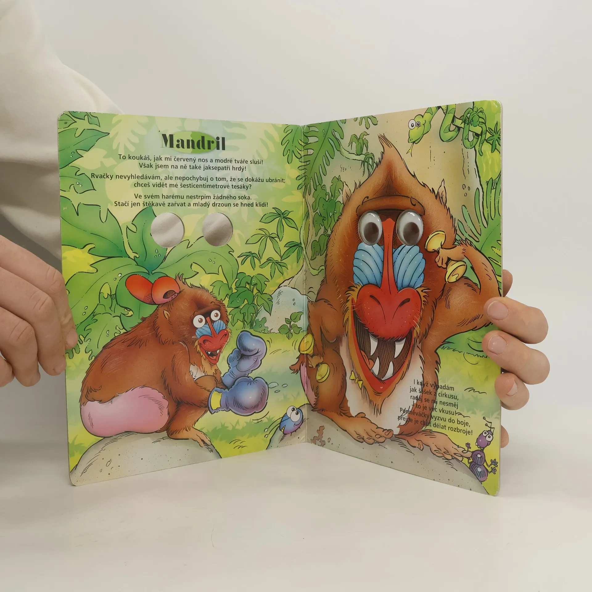 Toto leporelo vám představí cizokrajné savce. Orangutan, mandril, kahau nosatý – o každém se v této knížce dozvíte. Jakou barvu srsti mají, jestli umí používat prsty na nohou jako ruce, co jim chutná a kde spí. S touto knihou zažijete i mnoho zábavy – zvířátka mají plastové oči s pohyblivými panenkami.