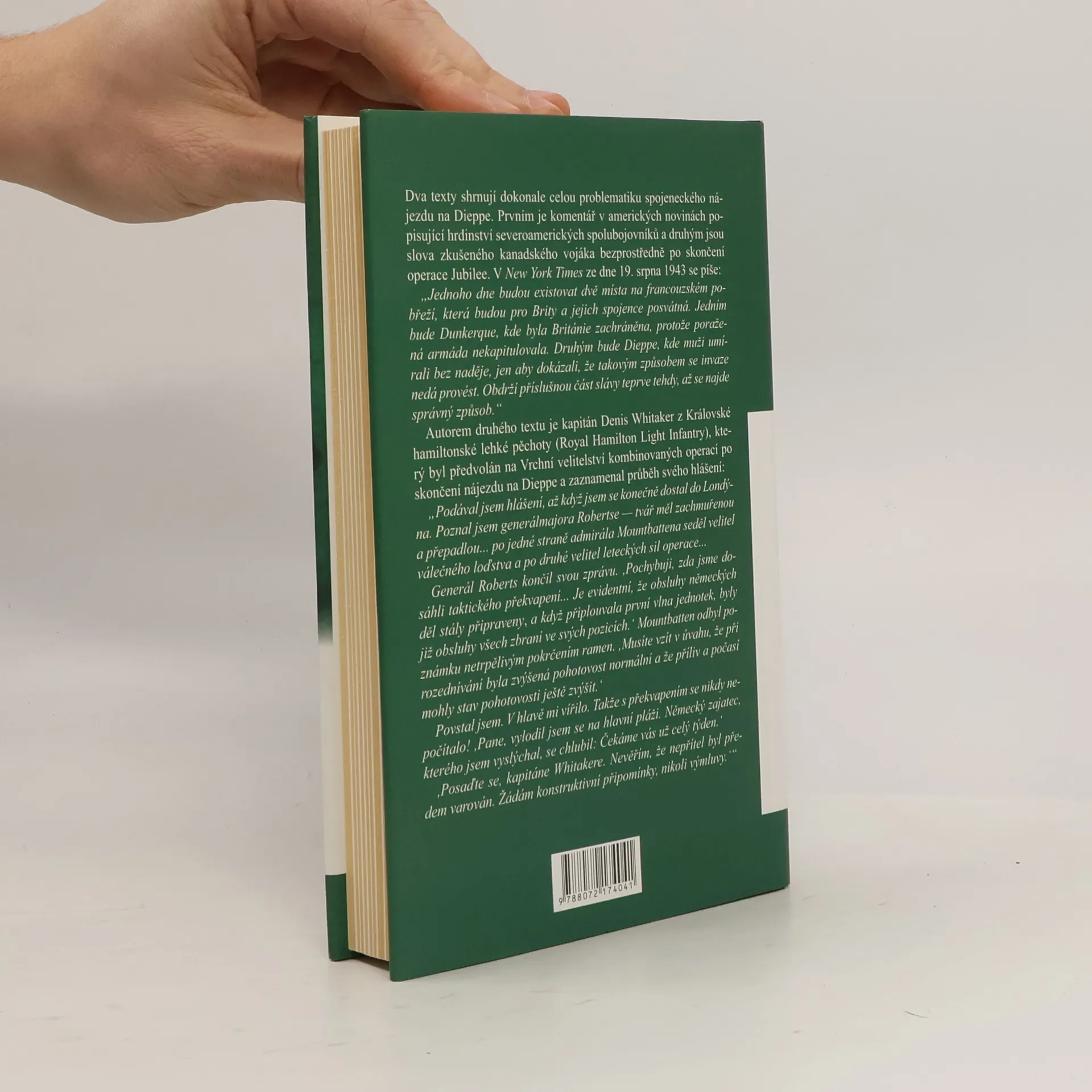 Podtitul: První spojenecké vylodění na evropské pevnině od útěku z Dunkerque - 2. kanadská divize Dne 19. srpna 1942 se na pobřeží u francouzského přístavního města Dieppe vylodilo několik tisíc příslušníků 2. kanadské pěší divize a britských Comanndos v rámci operace JUBILEE. Měl to být jednodenní průzkum bojem a také odpověď na neustálý nátlak sovětského vůdce J. V. Stalina, aby západní spojenci otevřeli druhou frontu a odlehčili těžce zkoušené Rudé armádě. Ve vražedné nepřátelské palbě však na kamenitých plážích zahynuly stovky vojáků, další tisíce jich padly do zajetí. Výsadková akce u Dieppe skončila neúspěšně a nacistická propaganda mohla hlásat do světa zprávy o nepropustnosti Atlantického valu. Další svazek knižnice Bojiště Evropy je věnován draze zaplacené generální zkoušce na vylodění v Normandii o dva roky později.