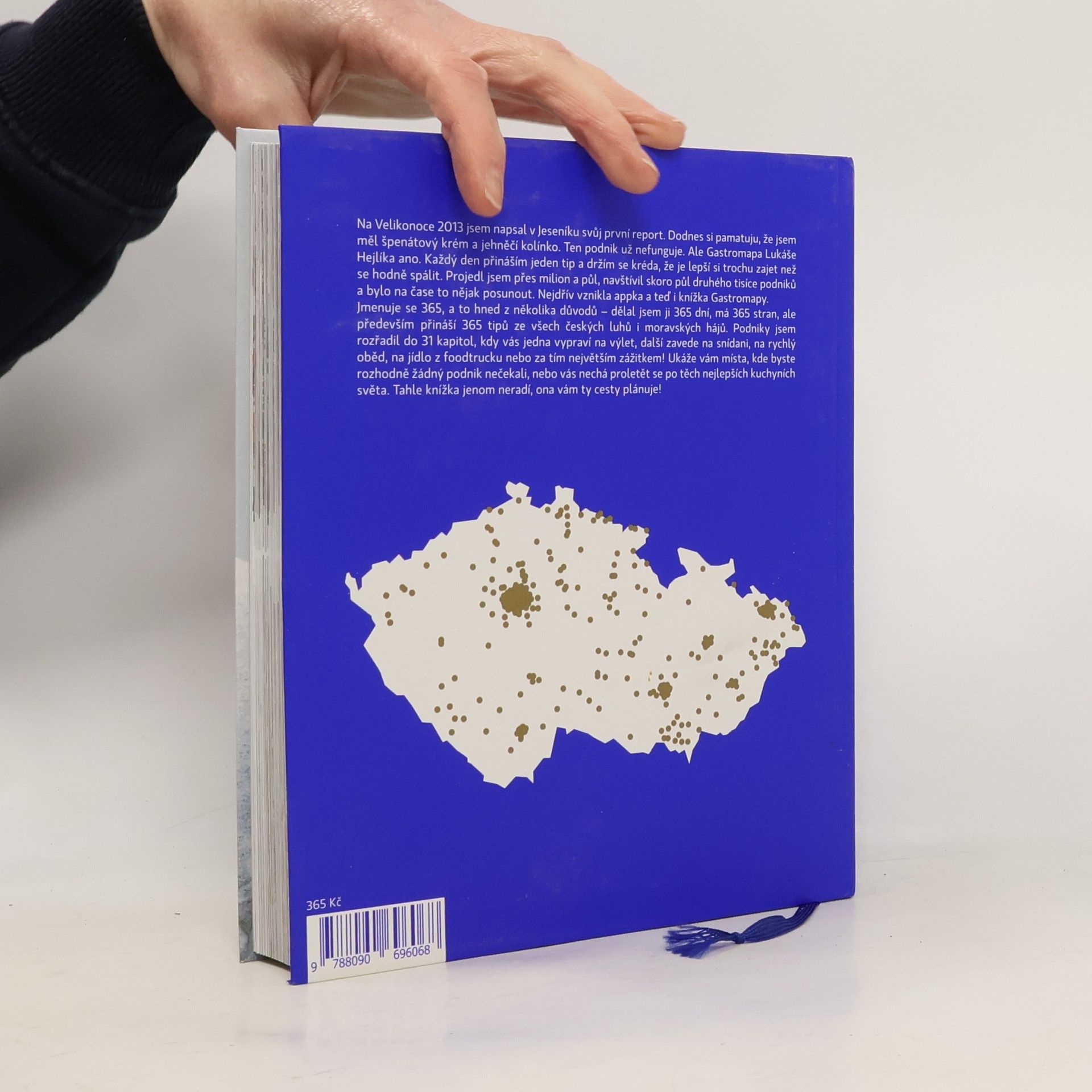Jmenuje se 365, a to hned z několika důvodů – dělal jsem ji 365 dní, má 365 stran, ale především přináší 365 tipů ze všech českých luhů i moravských hájů. Podniky jsem rozřadil do 31 kapitol, kdy vás jedna vypraví na výlet, další zavede na snídani, na rychlý oběd, na jídlo z foodtrucku nebo za tím největším zážitkem! Ukáže vám místa, kde byste rozhodně žádný podnik nečekali, nebo vás nechá proletět se po těch nejlepších kuchyních světa. Tahle knížka jenom neradí, ona vám ty cesty plánuje!