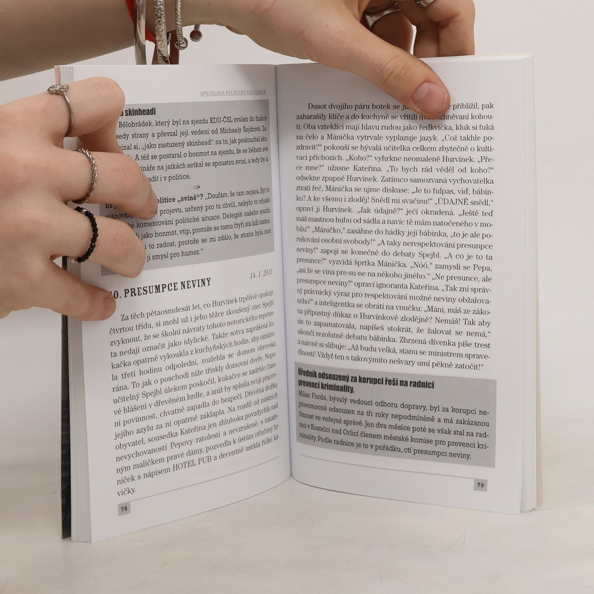 Politický a společenský život současnosti aneb jak to vidí Spejbl, Hurvínek a jejich dámské protějšky. Kniha obsahuje téměř 70 sloupků na nejrůznější témata, např.: Elita národa Sexy mozek Hurvínek jde na lup Šťabajzna se psem Tahle země není pro starý Papežovy kondomy Jak mazánek s kolibříkem spapali bonboniérku
