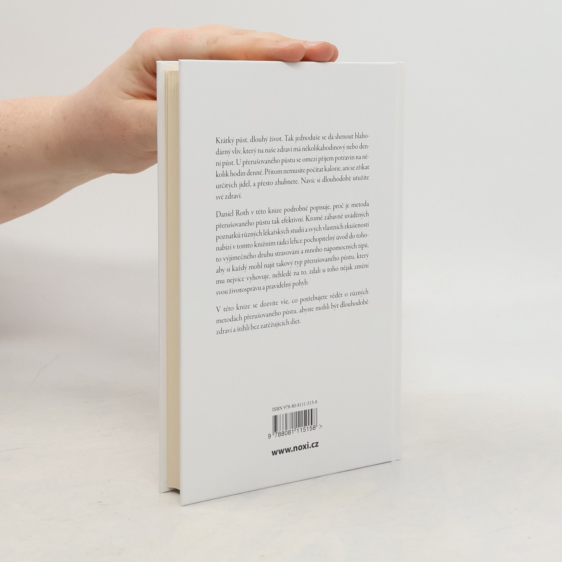 Krátký půst, dlouhý život. Tak jednoduše se dá shrnout blahodárný vliv, který na naše zdraví má několikahodinový nebo denní půst. U přerušovaného půstu se omezí příjem potravin na několik hodin denně. Přitom nemusíte počítat kalorie, ani se zříkat určitých jídel, a přesto zhubnete. Navíc si dlouhodobě utužíte své zdraví. Daniel Roth v této knize podrobně popisuje, proč je metoda přerušovaného půstu tak efektivní. Kromě zábavně uváděných poznatků různých lékařských studií a svých vlastních zkušeností nabízí v tomto knižním rádci lehce pochopitelný úvod do tohoto výjimečného druhu stravování a mnoho nápomocných tipů, aby si každý mohl najít takový typ přerušovaného půstu, který mu nejvíce vyhovuje, nehledě na to, zdali u toho nějak změní svou životosprávu a pravidelný pohyb. V této knize se dozvíte vše, co potřebujete vědět o různých metodách přerušovaného půstu, abyste mohli být dlouhodobě zdraví a štíhlí bez zatěžujících diet.