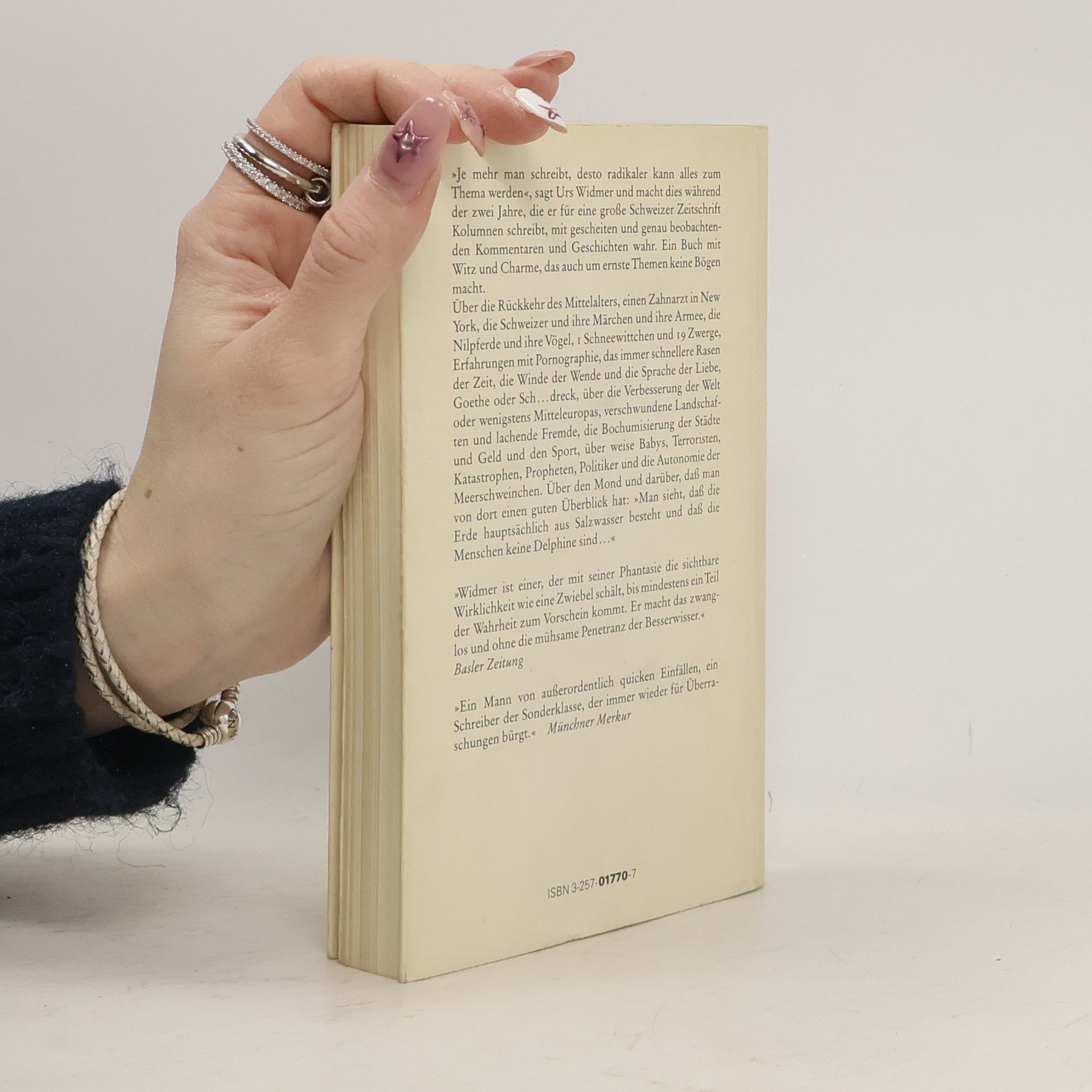 "kolumnen sind Lektüre für Minuten, aber Urs Widmer präsentiert die Inhalte wie eine geballte Ladung Schnupftabak: Das Gehirn wird gründlich freigeblasen." Basler Zeitung