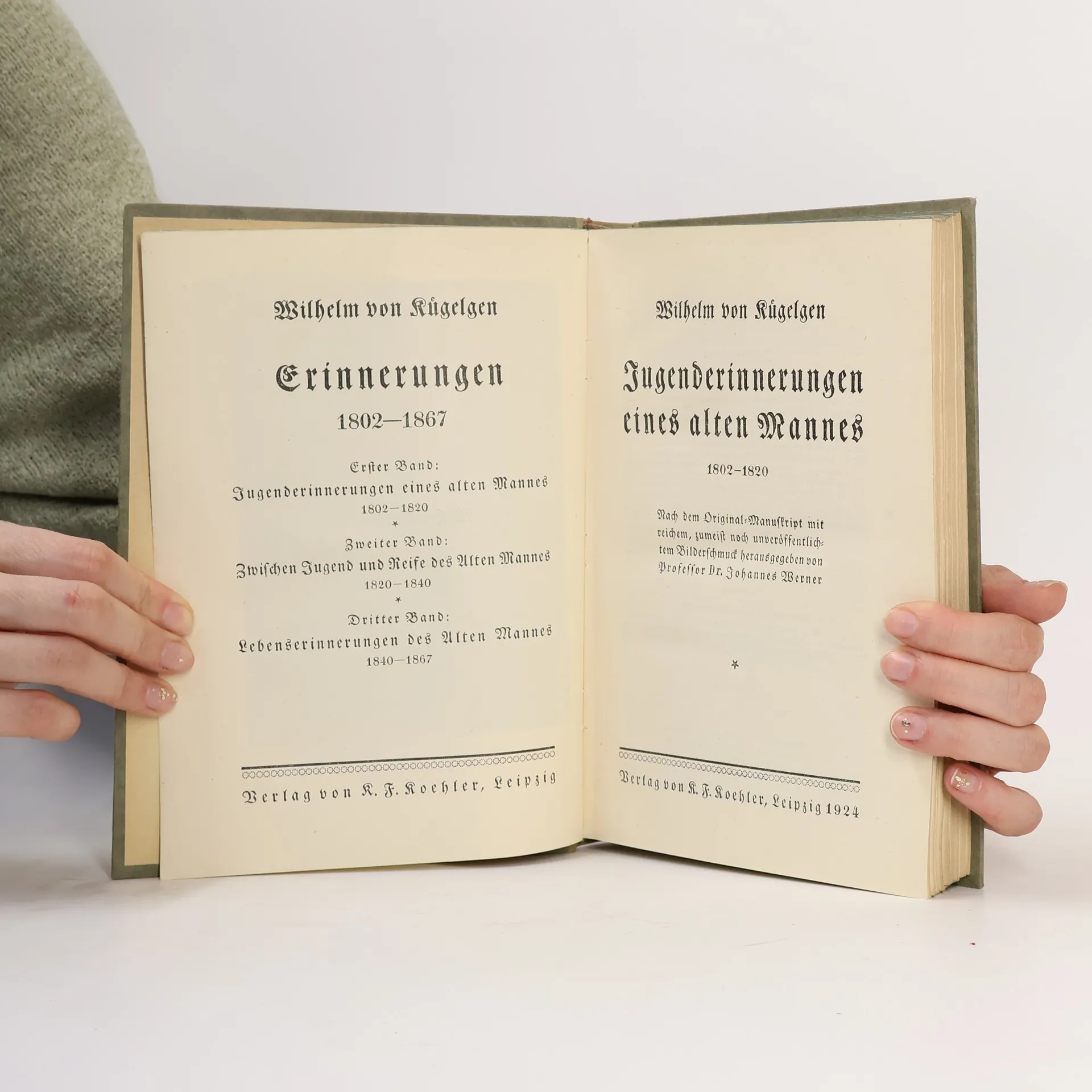 Wilhelm von Kugelgen: Jugenderinnerungen eines alten Mannes Lesefreundlicher Grossdruck in 16-pt-Schrift Edition Holzinger. Taschenbuch Berliner Ausgabe, 2014 Vollstandiger, durchgesehener Neusatz bearbeitet und eingerichtet von Michael Holzinger Entstanden 1855-1865. Erstdruck, Hrsg. von Philipp von Nathusius: Berlin (Hertz) 1870. Textgrundlage ist die Ausgabe: Kugelgen, Wilhem von: Jugenderinnerungen eines alten Mannes. Mit einer Einfuhrung von Gerhard Deszyk und einem Nachwort von Walter Bredendiek, 6. Auflage der Neuausgabe, Leipzig: Koehler & Amelang, 1959. Herausgeber der Reihe: Michael Holzinger Reihengestaltung: Viktor Harvion Gesetzt aus Minion Pro, 16 pt. "