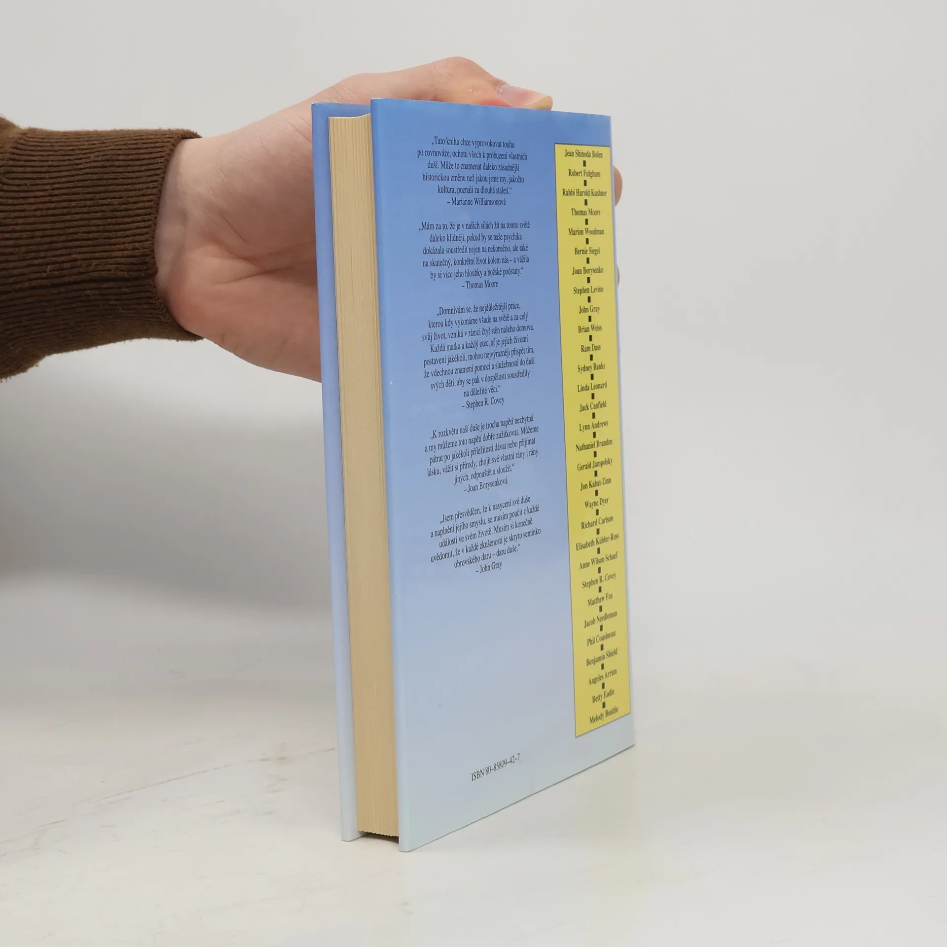Kniha je sborníkem úvah předních amerických autorů, kteří se zabývají psychikou člověka. Mezi přispěvateli najdeme Thomase Moora, Marriannu Williamsonovou, Jacka Canfielda a Roberta Fulghuma, kteří nabízejí inspirující názory na postavení duše v dnešním světě. Tato sbírka více než třiceti originálních úvah se zaměřuje na význam pěstění a rozvoje ducha, přičemž poskytuje praktické metody, jak jednotlivci pečovat o svou duši v každodenním životě. Autoři se dělí o své názory na různá témata, jako jsou "Vaše duše chytá druhý dech", "Duše v každodenním životě", "Duševní lekce" a "Návrat k duši". Thomas Moore se zamýšlí nad vyrovnáváním se s každodenností, Bernie Siegel se věnuje lásce jako výtvoru duše, a Betty Eadieová píše o božském duchu. Další příspěvky zahrnují "Vitamíny lásky pro vaši duši" od Johna Graye, "Svědomí coby průvodce" od Stephena Coveyho, a "Okna do duše" od Jean Shinoda Bolenové. Ram Dass nás vede na "Pouti vědomí", Joan Borysenková radí, jak se stát oduševnělým, a Melody Beattieová přednáší "Lekce lásky, lekce naděje". Tento soubor inspirujícího čtení nás vyzývá k prozkoumání hlubin vlastního nitra, abychom lépe porozuměli své duši a nalezli naplnění v životě.