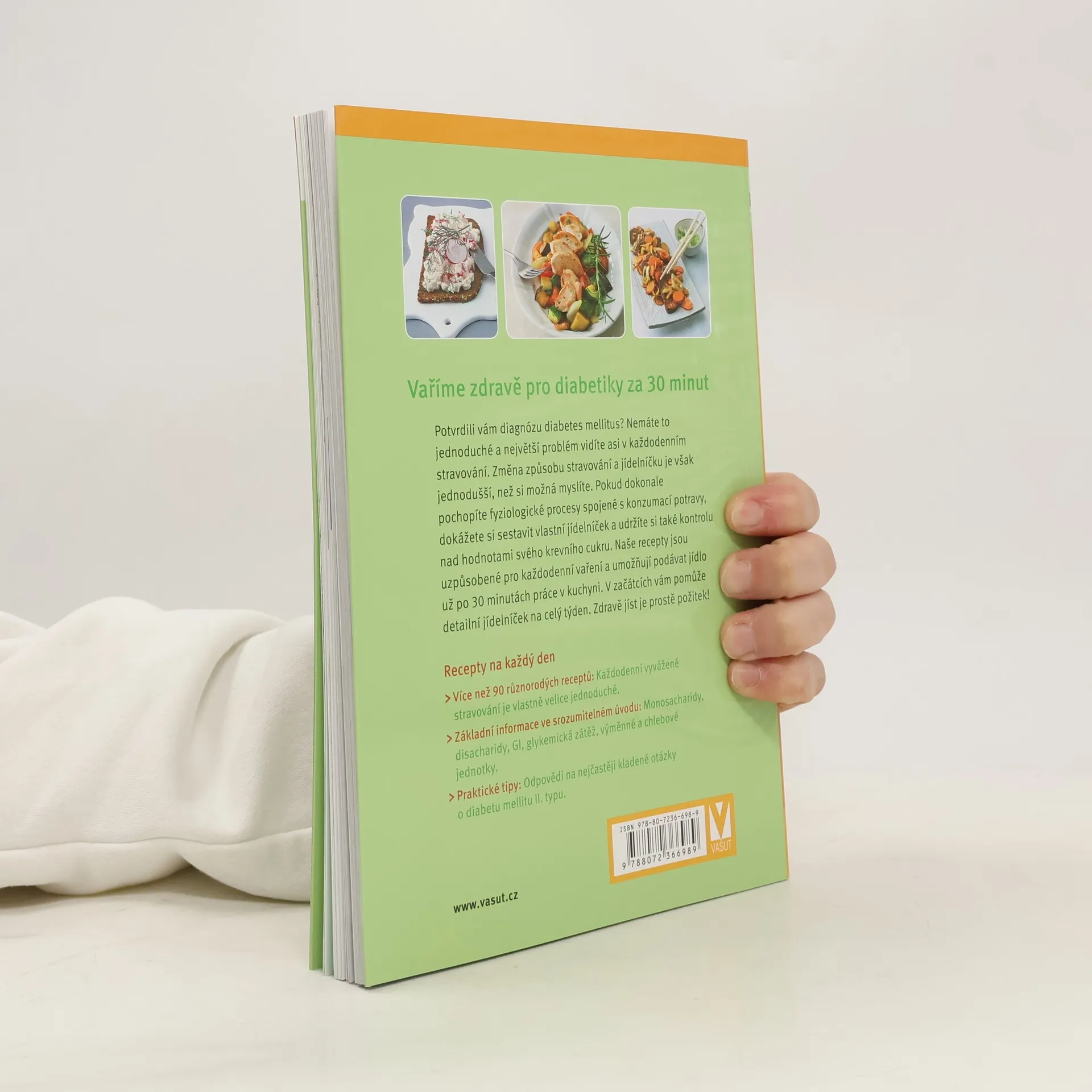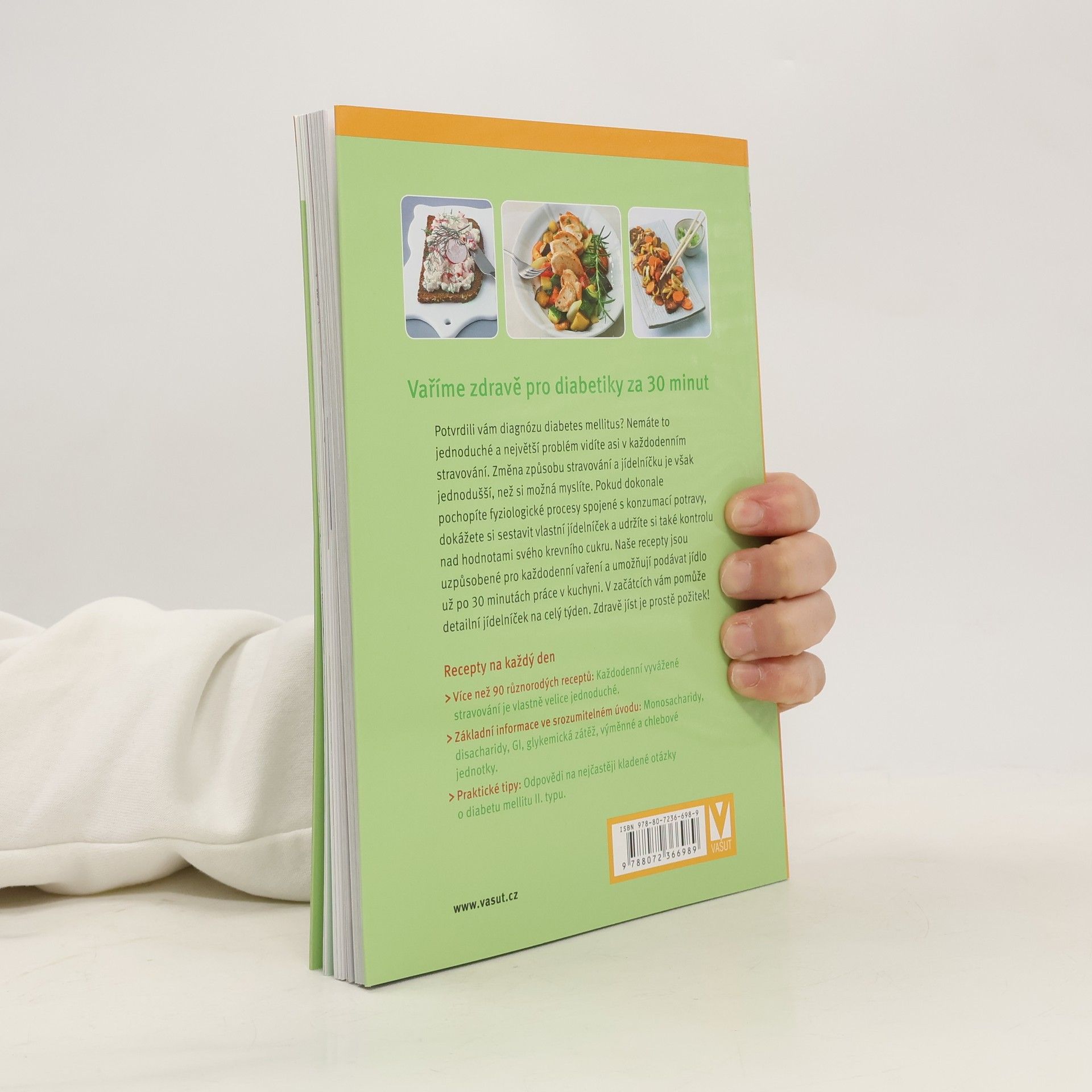 Potvrdili vám diagnózu diabetes mellitus? Nemáte to jednoduché a největší problém vidíte asi v každodenním stravování. Změna způsobu stravování a jídelníčku je však jednodušší, než si možná myslíte. Pokud dokonale pochopíte fyziologické procesy spojené s konzumací potravy, dokážete si sestavit vlastní jídelníček a udržíte si také kontrolu nad hodnotami svého krevního cukru. Naše recepty jsou uzpůsobené pro každodenní vaření a umožňují podávat jídlo už po 30 minutách práce v kuchyni. V začátcích vám pomůže detailní jídelníček na celý týden. Zdravě jíst je prostě požitek! Užijte si recepty na každý den: - Více než 90 různorodých receptů: Každodenní vyvážené stravování je vlastně velice jednoduché. - Základní informace ve srozumitelném úvodu: Monosacharidy, disacharidy, GI, glykemická zátěž, výměnné a chlebové jednotky. - Praktické tipy: Odpovědi na nejčastěji kladené otázky o diabetu mellitu II. typu. (90 chutných jídel připravených do 30 minut)