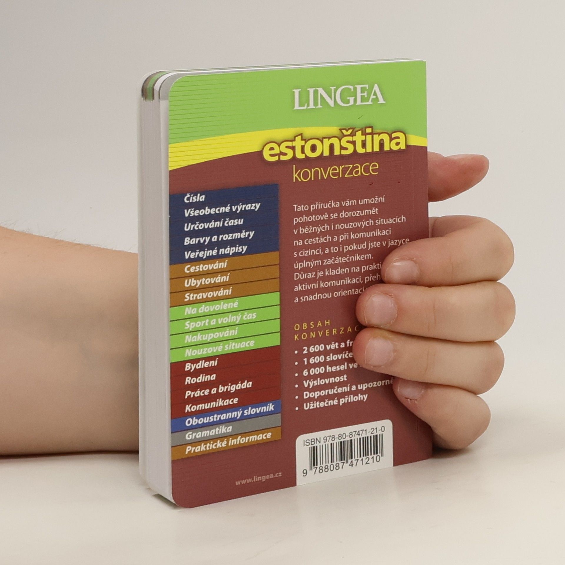 Estonsko je překrásná starobylá země, která vás ohromí malebností přírody, středověkými hrady či majestátními městy. Při návštěvě Pobaltí tuto jeho nejsevernější zemi rozhodně nevynechejte. Téměř polovinu země pokrývají lesy, v nichž se prohánějí medvědi, vlci či rysi. Úžasnou pestrost krajiny doplňuje množství jezer. Hlavní město Tallinn jedno z nejlépe zachovalých středověkých měst v severní Evropě a hlavní pobaltská brána do Skandinávie. Staré město je právem na seznamu UNESCO. Součástí příručky je i oboustranný slovník a přehled gramatiky. Takto moderně pojatá příručka estonštiny vychází vůbec poprvé. Obsah konverzace: 320 stran, 2 600 vět a frází, 1 600 slovíček v tématech, 6 000 hesel ve slovníku, doporučení a upozornění, přepis výslovnosti všech frází, 21 stran gramatiky, 10 stran praktických informací o zemi