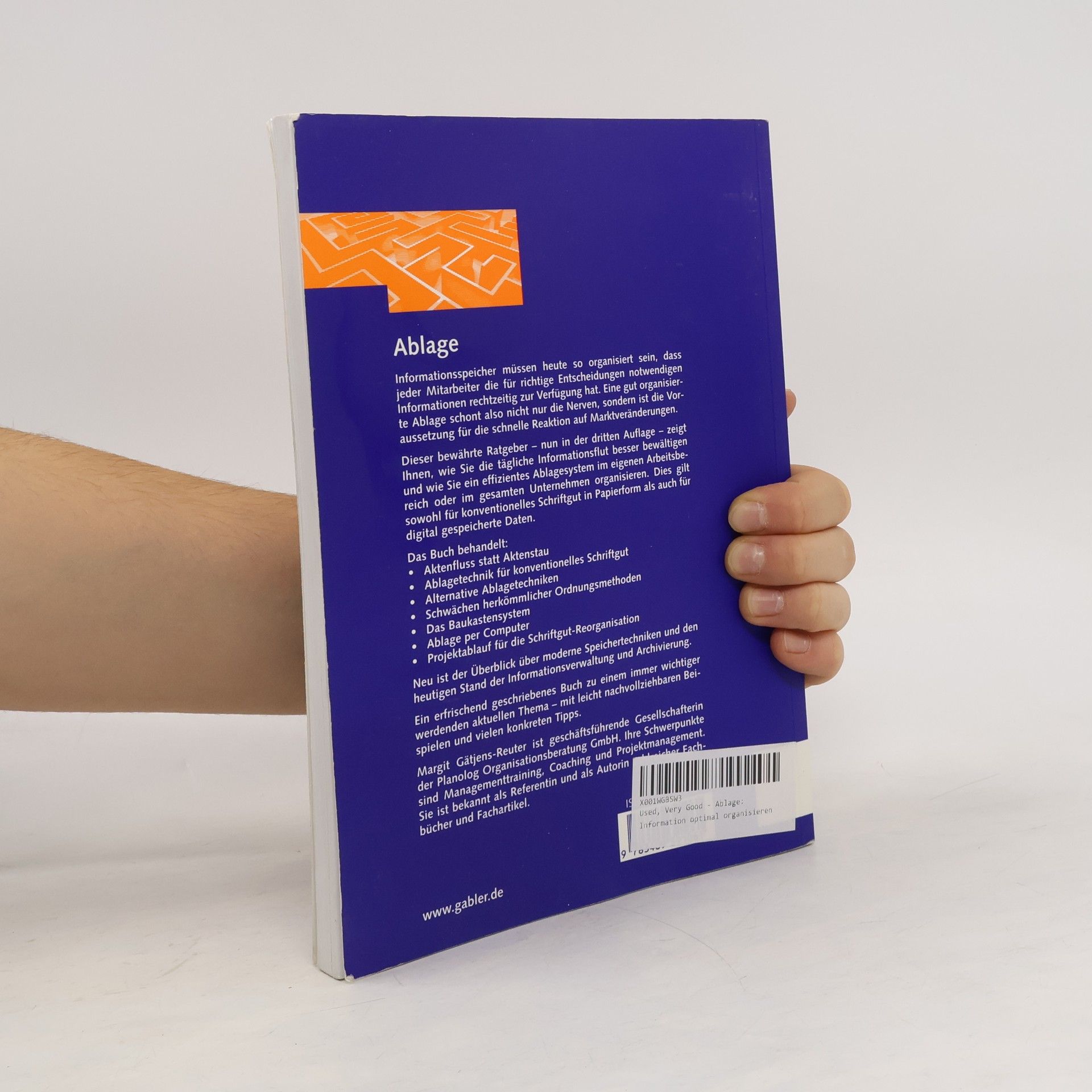 Dieser bewährte Ratgeber vermittelt das nötige Know-how, um Suchzeiten zu verringern und abgelegtes Schriftgut sowie elektronisch gespeicherte Daten als einen jederzeit abrufbaren Informationsspeicher zu nutzen. „Ablage“ beschreibt, wie Sie die tägliche Informationsflut besser in den Griff bekommen und ein effizientes Ablagesystem im kleinen Bereich oder im gesamten Unternehmen organisieren. Neu in der dritten Auflage ist ein Überblick über moderne Speichertechniken und den heutigen Stand der elektronischen Informationsverwaltung und Archivierung sowie verschiedene Checklisten für die Reorganisation der Ablage.